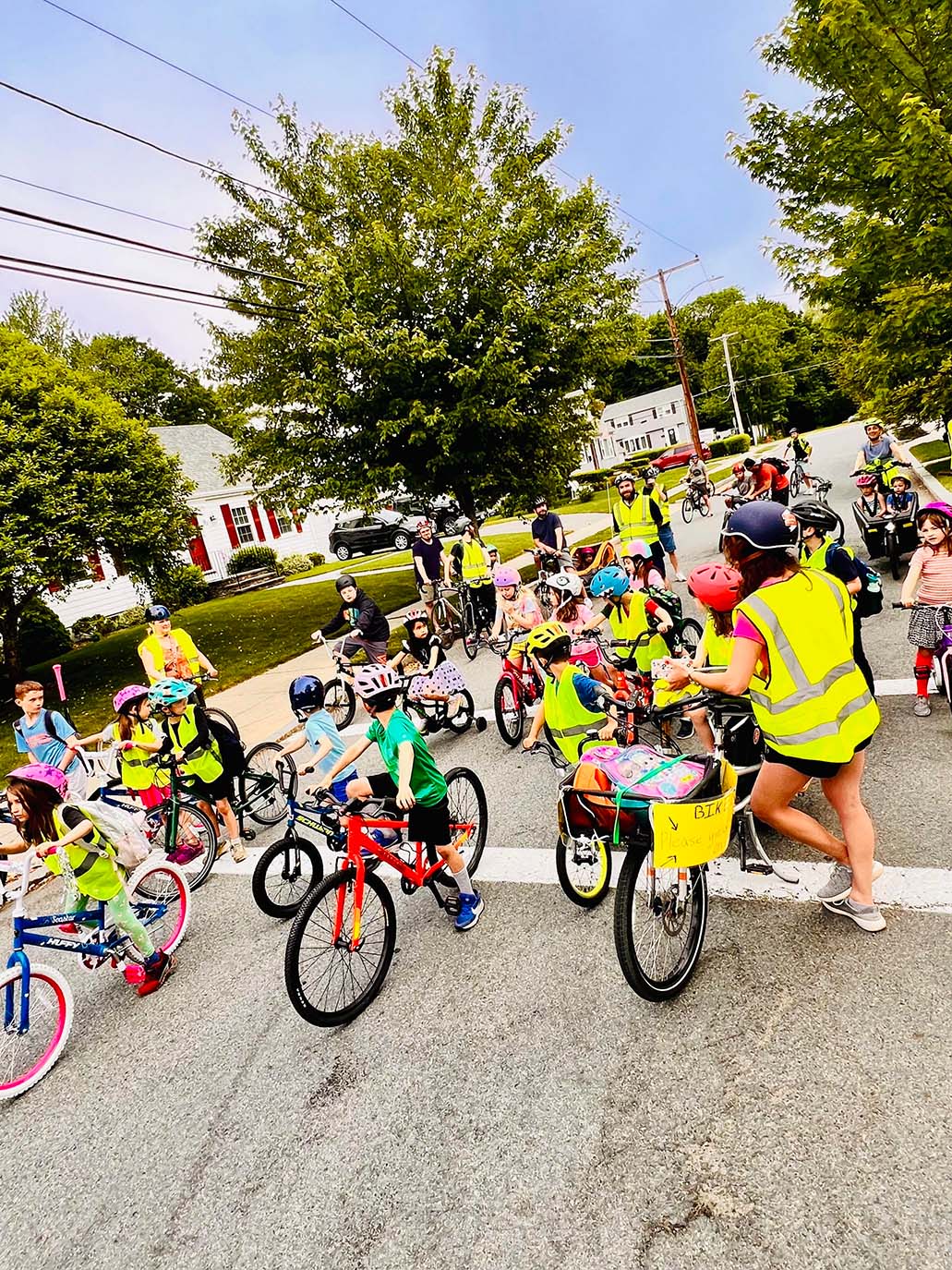 The goal of the bike bus is not just to encourage kids to bike and parents to feel comfortable letting them be independent on their bikes; it is also to raise awareness of the importance of safe driving to allow kids to travel safely around town. “The reason a lot of parents don’t want our kids to walk or bike is cars,” Conway pointed out, and she hopes that the bike bus will “bring awareness to the fact that there are kids on the road and we should prioritize their safety.” If our streets are safer for kids to walk and bike, Conway said, then parents can allow their kids more independence, and families can make fewer driving trips to school.