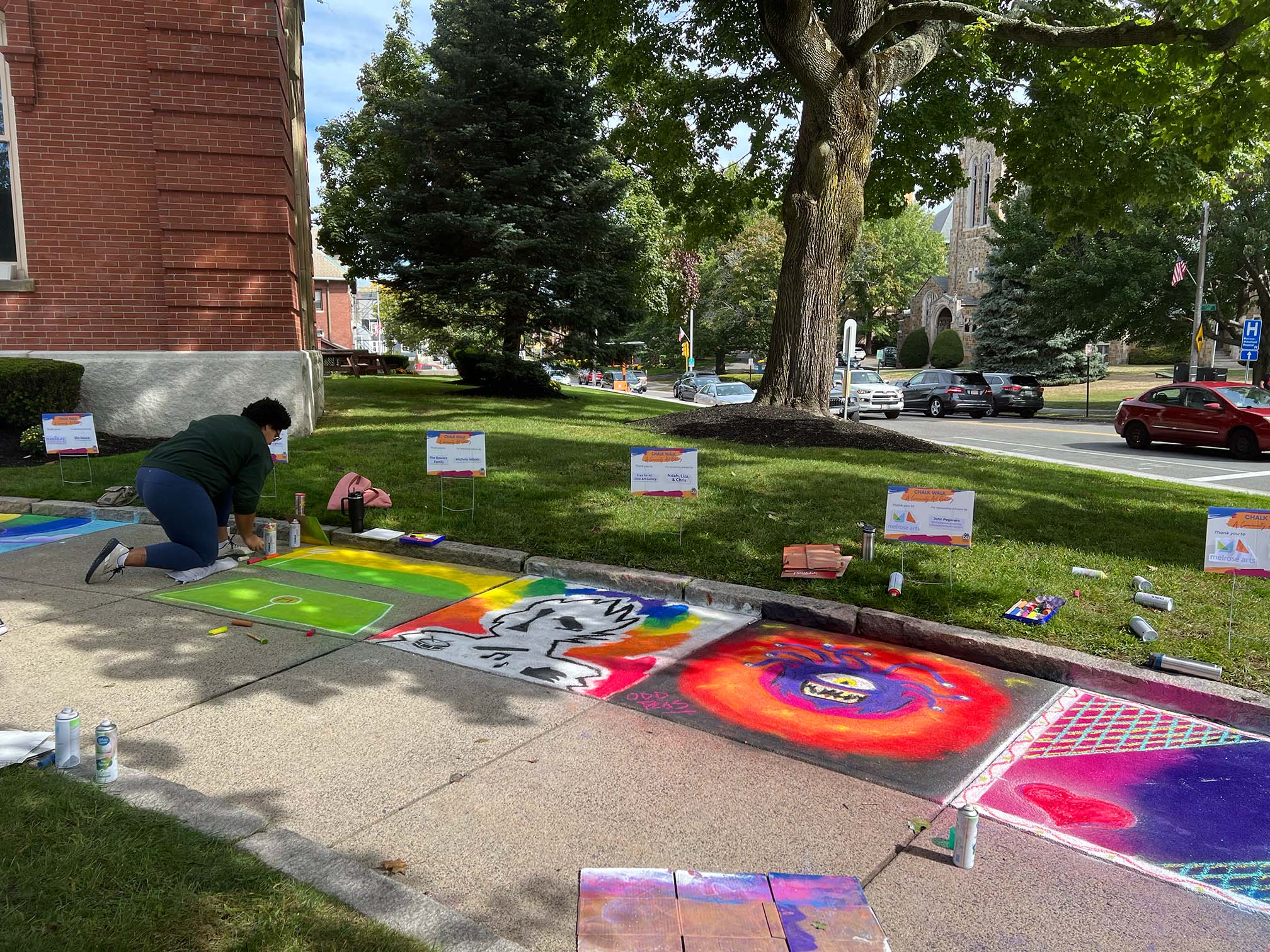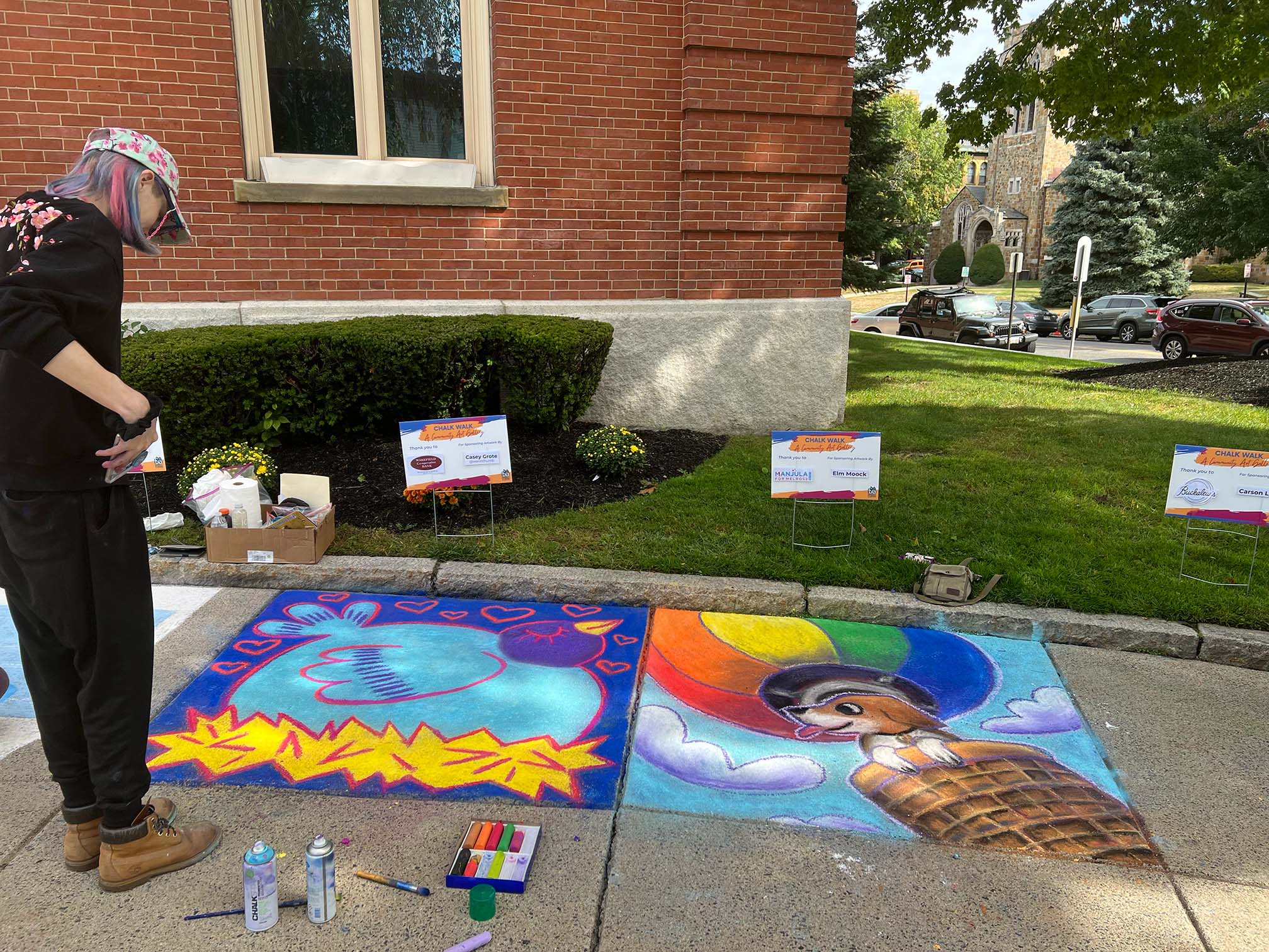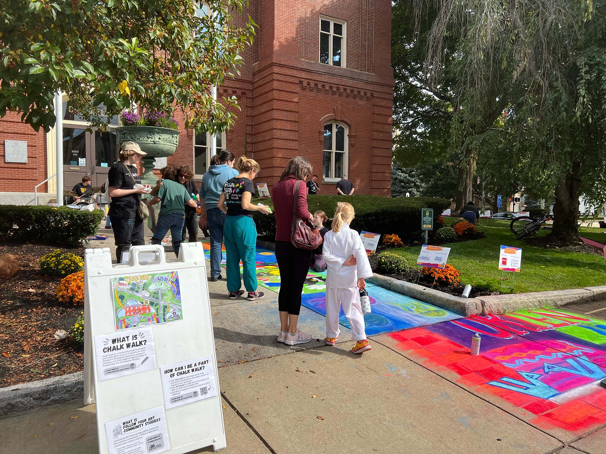 On Saturday, Melrosians of all ages came out to Ell Pond and City Hall to watch artists at work and make their own chalk art.