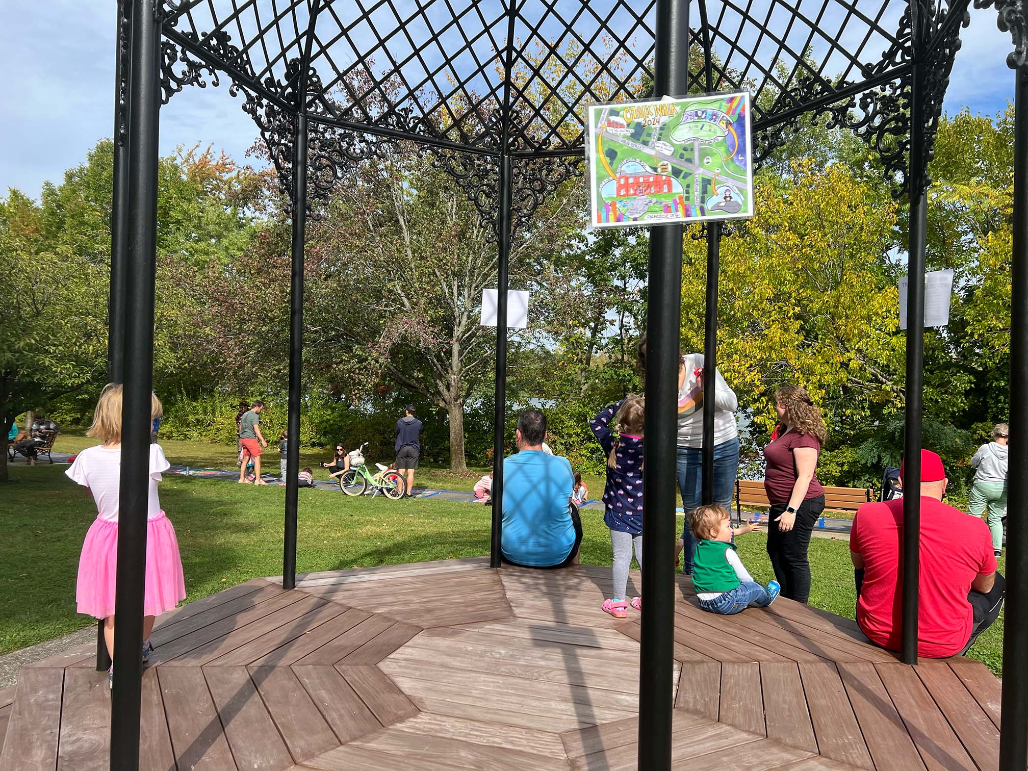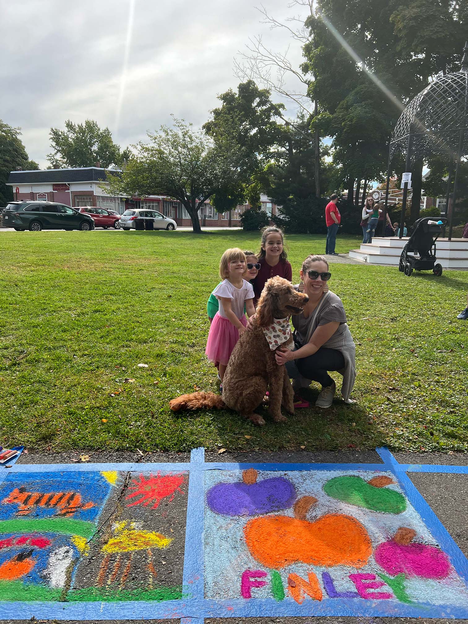 Over at Ell Pond, by the gazebo, community members created their own squares, with some Halloween- or fall-themed, and abstract or following other themes. There was face painting, and Finley the Therapy Dog made an appearance, too.