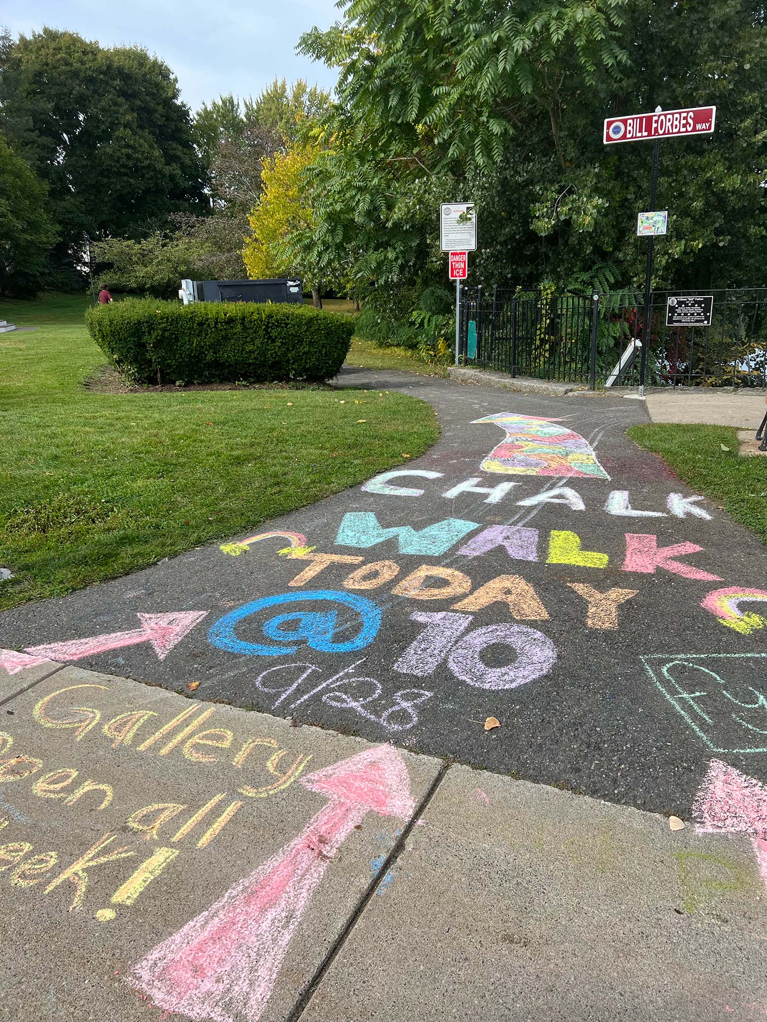 The Chalk Walk galleries at City Hall and Ell Pond will be open for the public to view for as long as the chalk lasts - until the next big rainstorm!