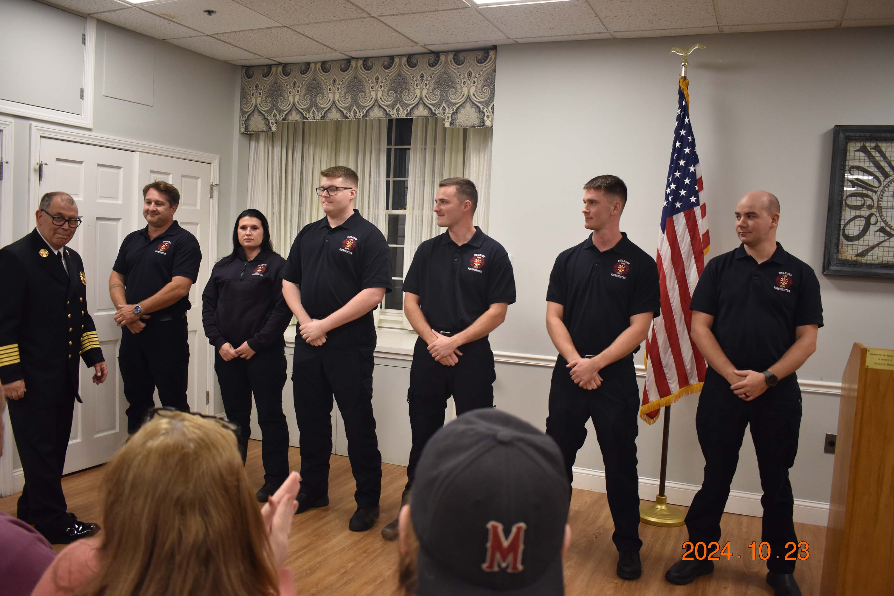 Chief White with new recruits to the Melrose Fire Department at last week's ceremony