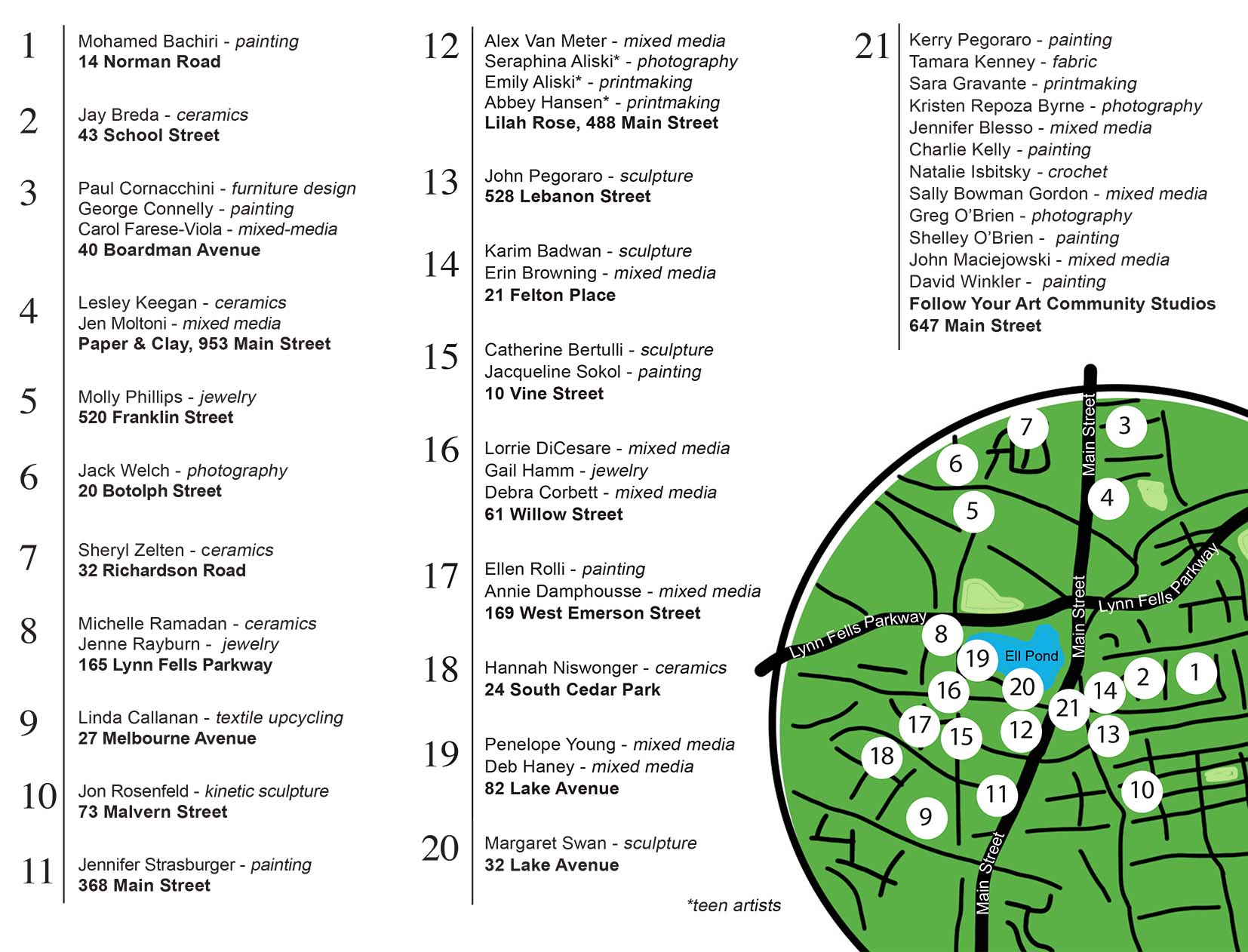 MOST is an offshoot of Melrose Arts, which runs the annual Melrose Arts Festival in the spring. It started in 2017 with 27 participating artists; now running for the 8th year, it has grown to over 40 artists.