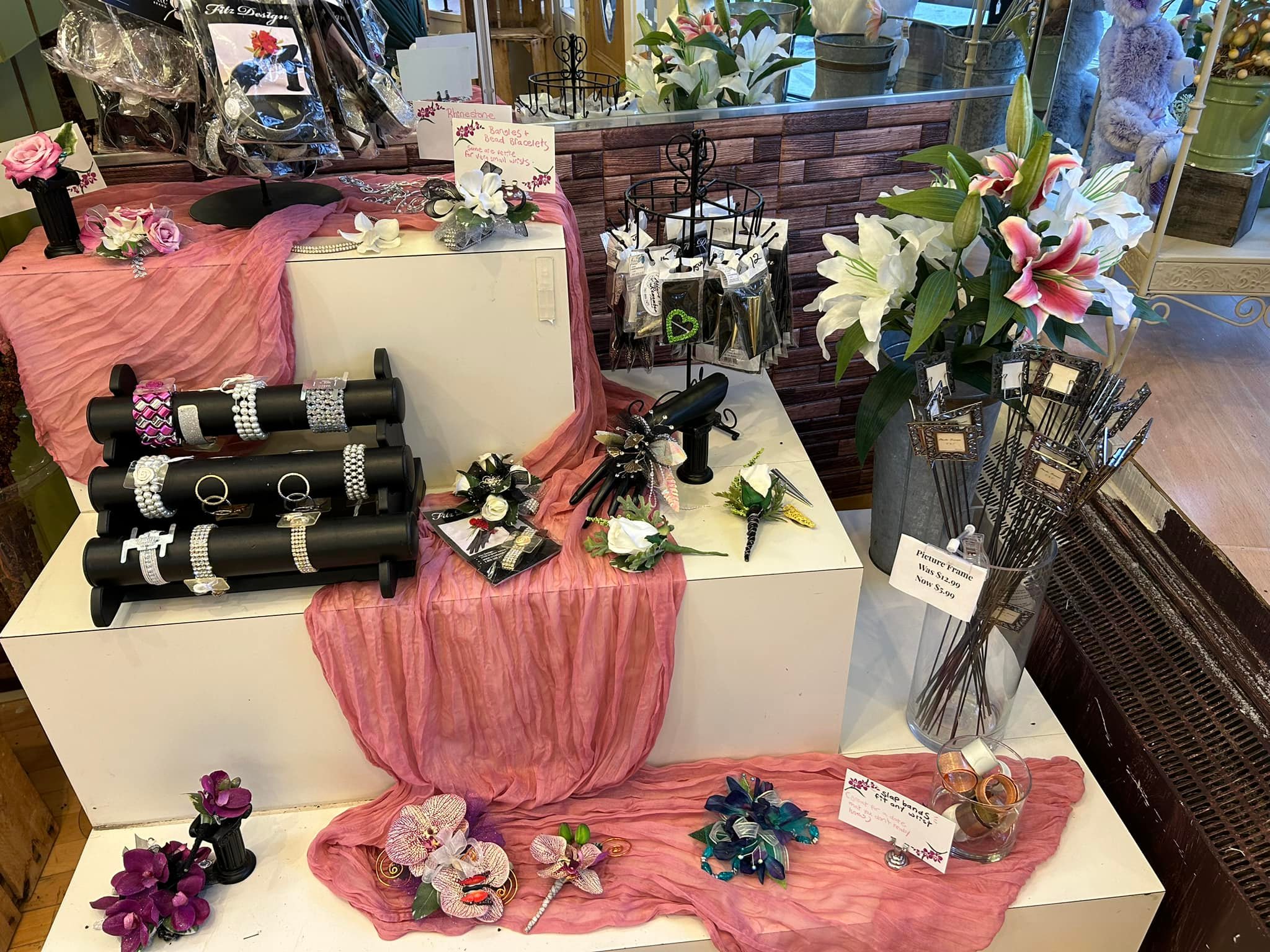 Affairs To Remember is a woman-owned company, they have a refrigerator packed with a variety of cut flowers and arrangements. Complementing the flowers they sell candy, balloons, and have an area where you can repot your plants. Something unique is they have a prom bar – you select your corsage or boutonniere, flowers and the bling. Lots of choices and very cool.