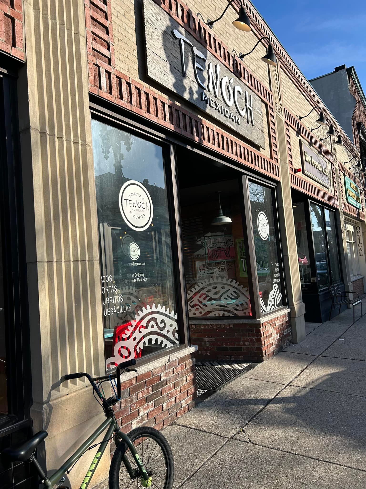 Tenoch Mexican: Opened in 2021, it is the smaller of the 3 restaurants, industrial décor with metal tables and chairs, big windows with lots of natural light, view of Main Street.