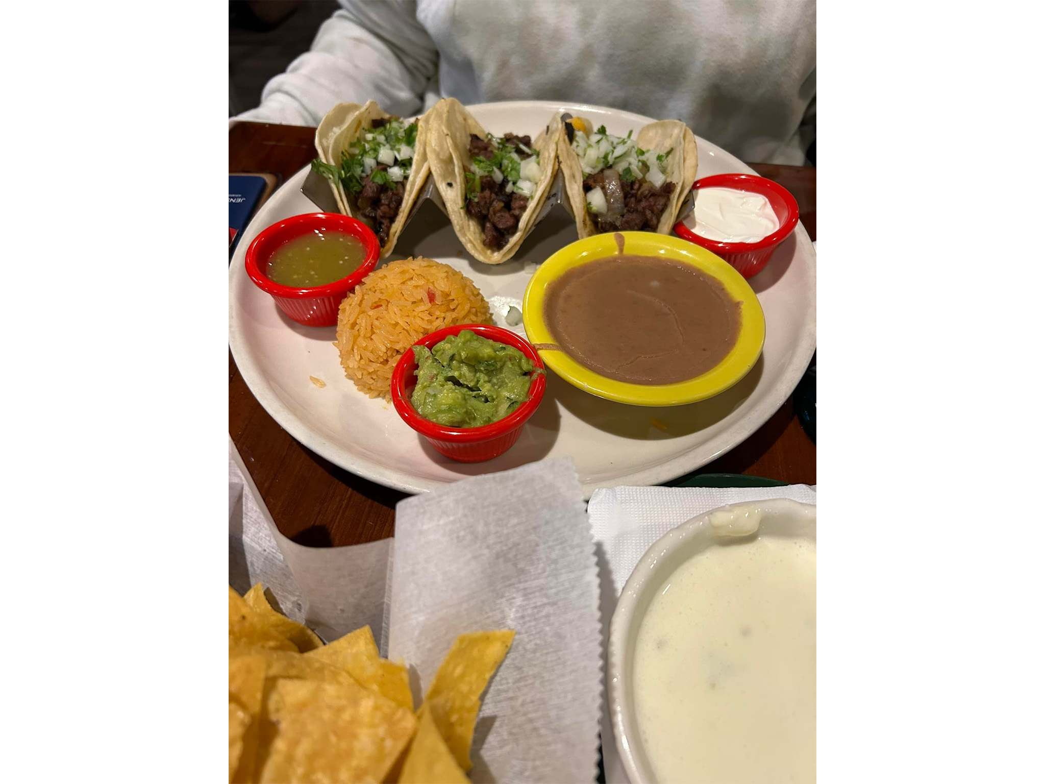 As soon as you sit down, house made chips and salsa magically appear. Extensive menu including platters, large portions, lunch specials, and amazing staff. Outstanding Sangria. Fajitas are terrific, Al Pastor tacos with pineapple salsa are excellent.