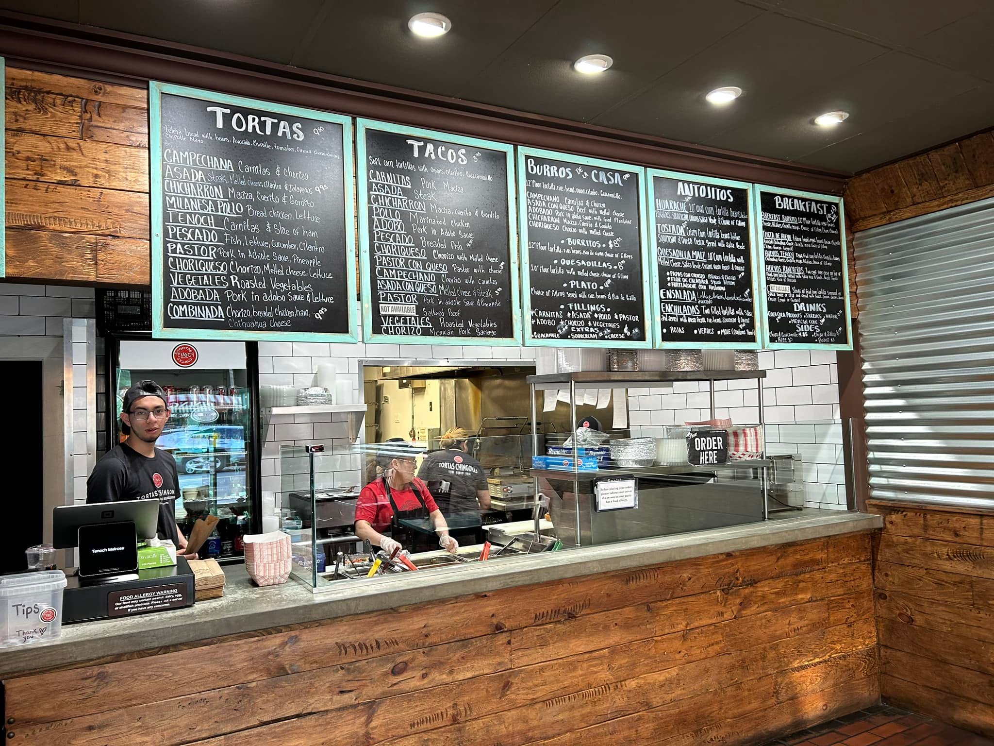 The menu is not extensive but has all the essentials. Big plus – they serve breakfast from 9-11 am – their breakfast burrito is excellent. Chicken tacos are the best I have had – tender with delicious flavor. I did not have the pressed sandwiches made with telera bread but will next trip, they looked incredible.