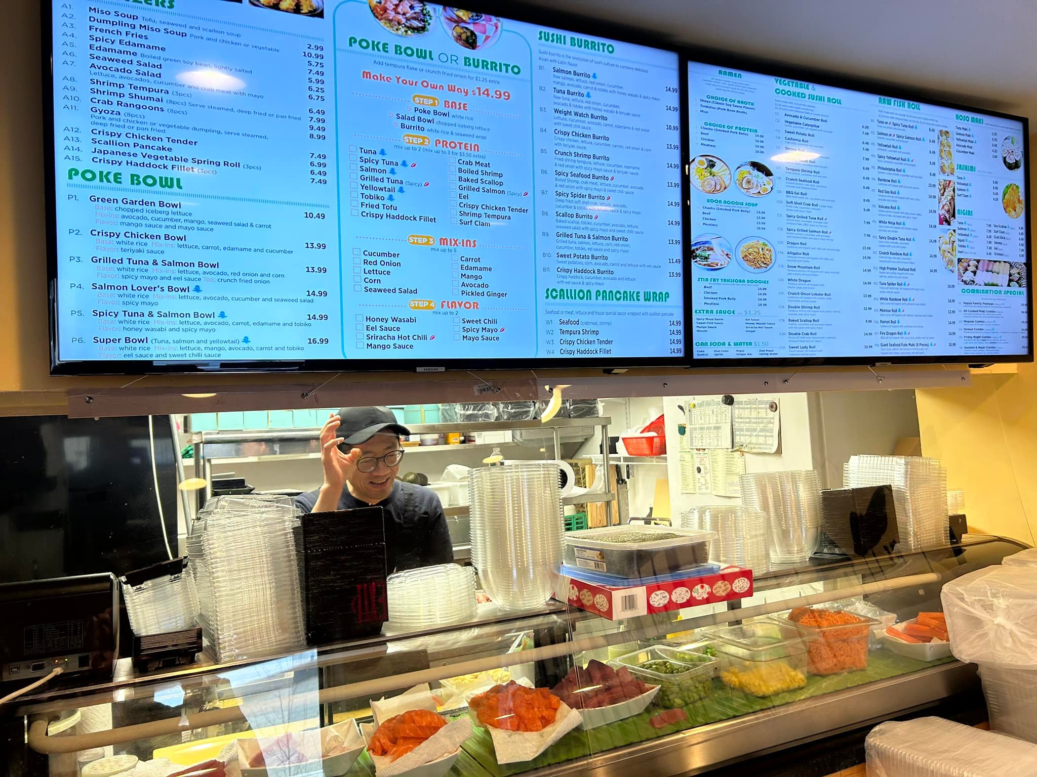 This tiny take out spot has an incredibly extensive menu with poke bowls, sushi, sushi burritos, and more. Plenty of vegan, vegetarian, chicken, and fish options. Looking forward to trying many new dishes!