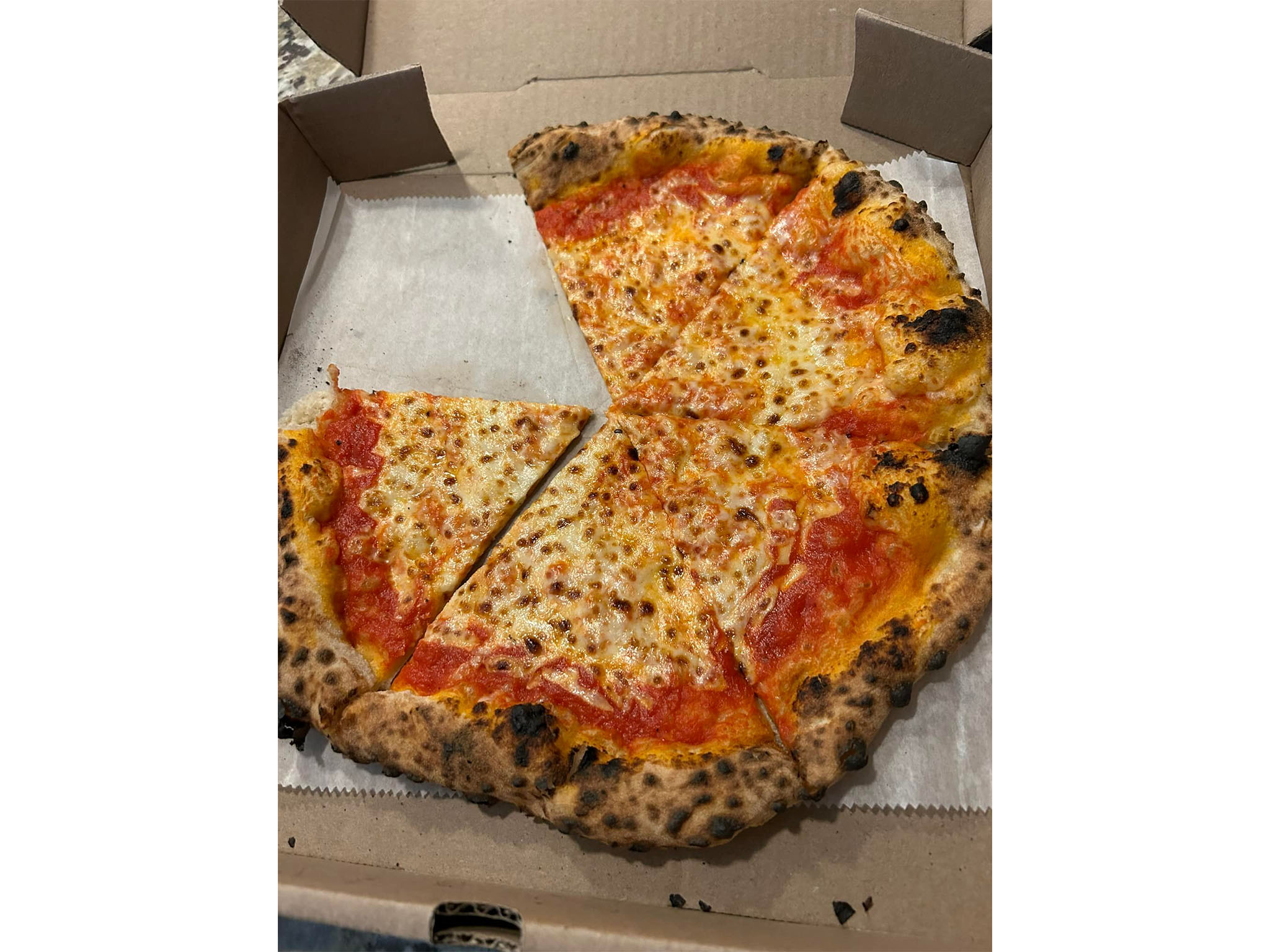 Wood + Fire has the best crust: crispy but not too crispy, soft but not too soft, and delicious. The char from the brick oven fire is perfect. Now add superb pizza sauce, cheese, onions, and sausage, all with the perfect ratios, throw it in the wood fire oven and you have a scrumptious dinner. I love watching the fire from the oven.