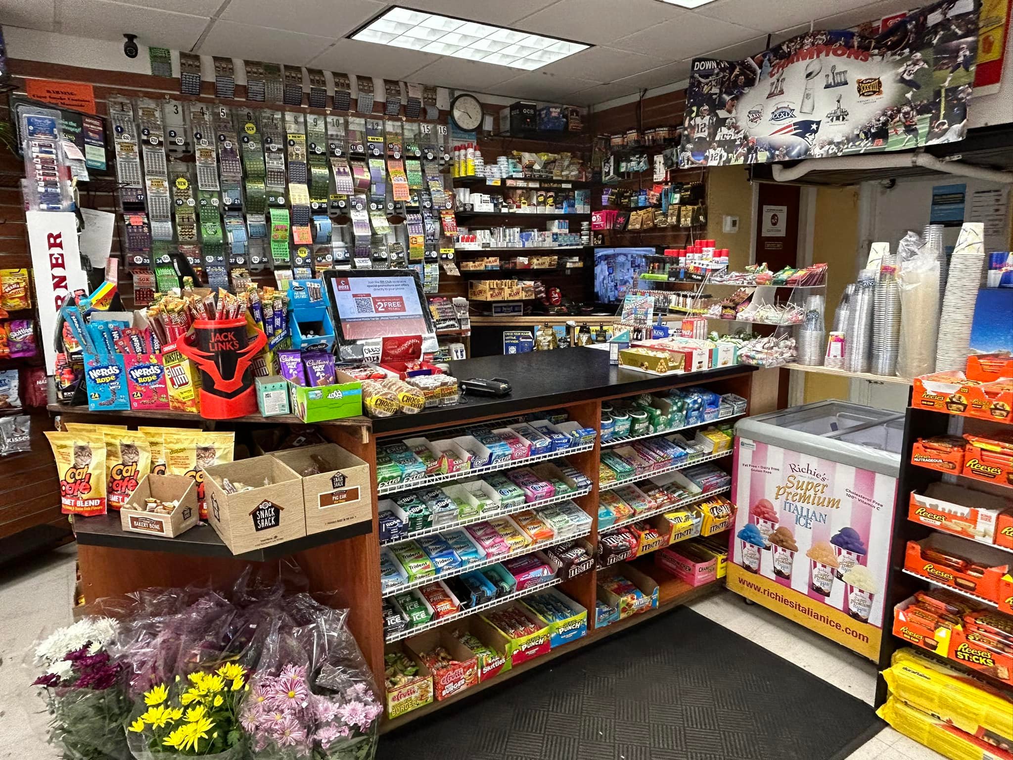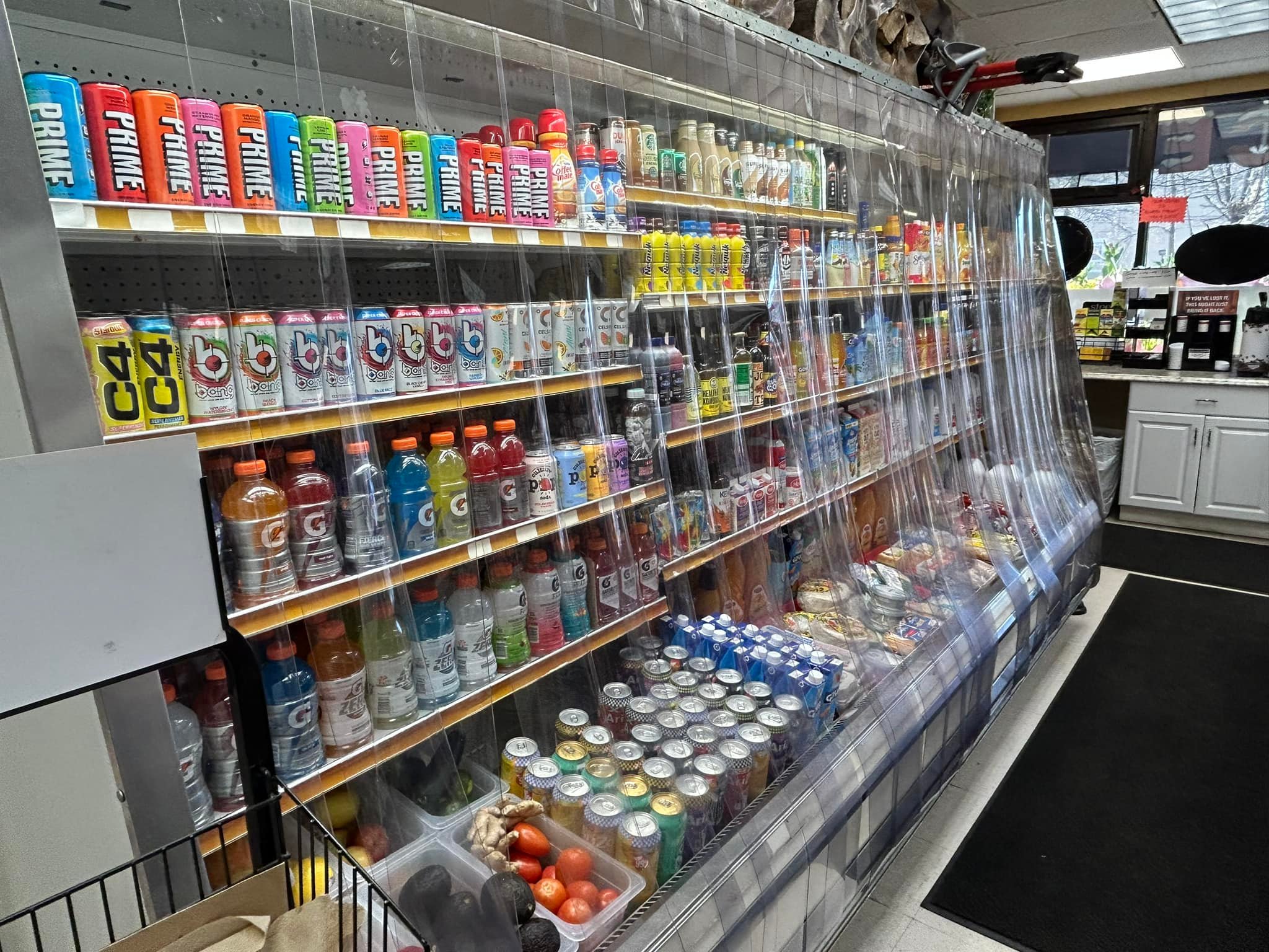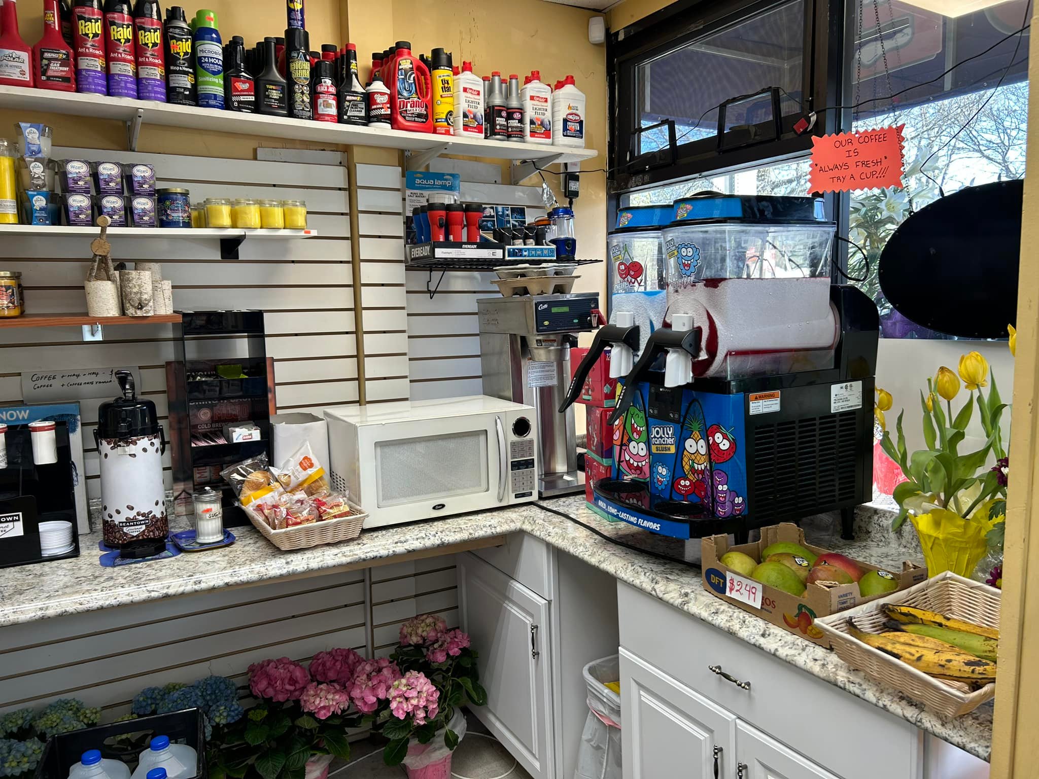 In addition to the fresh flowers, the market has a nice variety of groceries, fresh produce, dairy products, frozen foods, greeting cards, slush, and snacks. They have a coffee station, lottery tickets, and a selection of Indian spices.