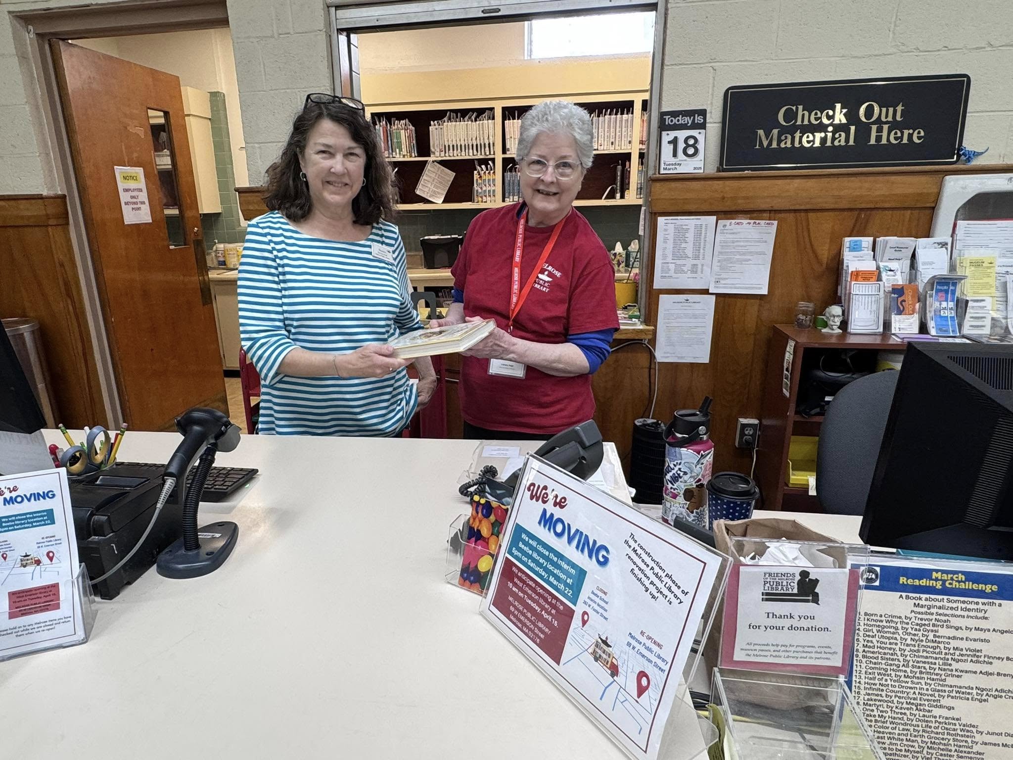 Between now and April 15th, Melrose residents can visit other libraries in the North of Boston Library Exchange (NOBLE), including libraries in Malden, Stoneham, Saugus, Wakefield, and Reading.