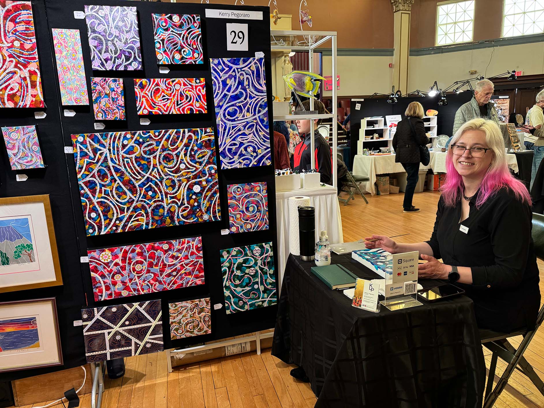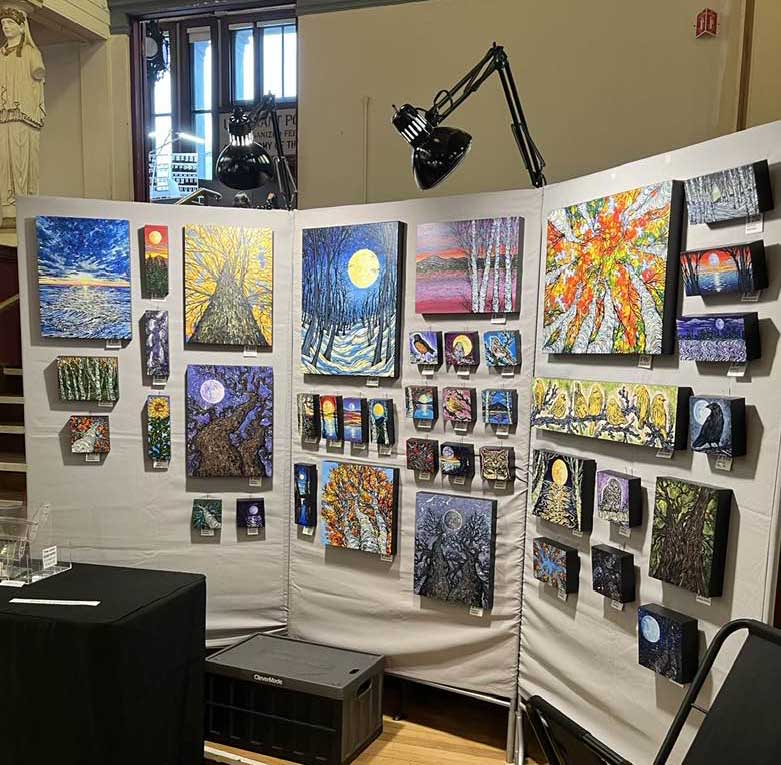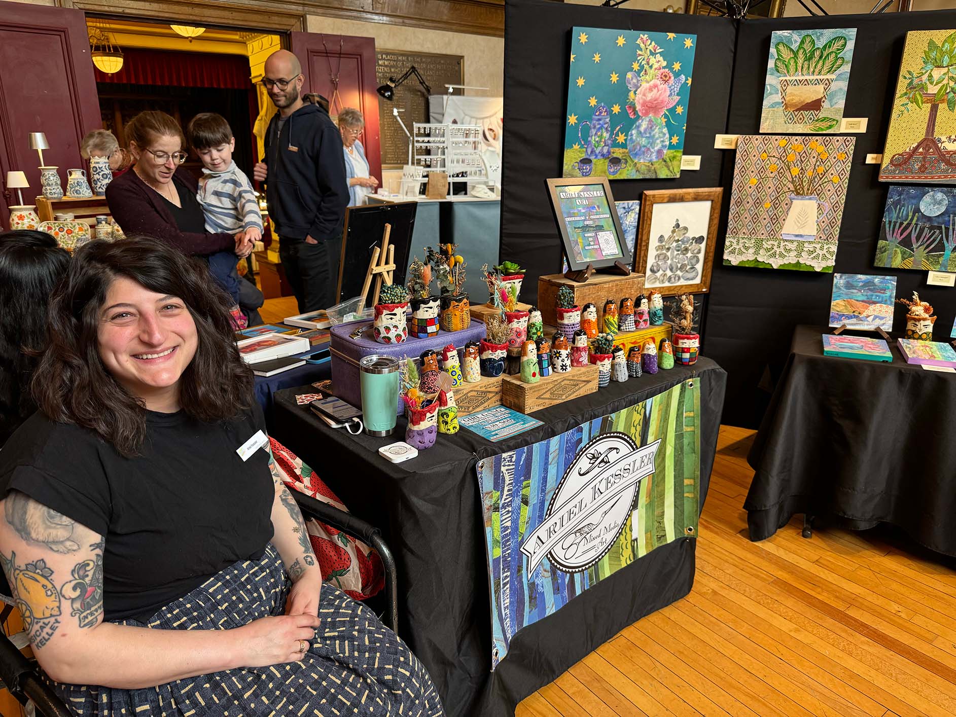 Over 40 artists had their work on display, and visitors enjoyed four different local bands, food trucks, caricatures, face painting, and a raffle. Follow Your Art Community Studios led a community art project on the stage, and this was the first year that Follow Your Art's Junior Artisan Fair was held on the lower level of Memorial Hall.