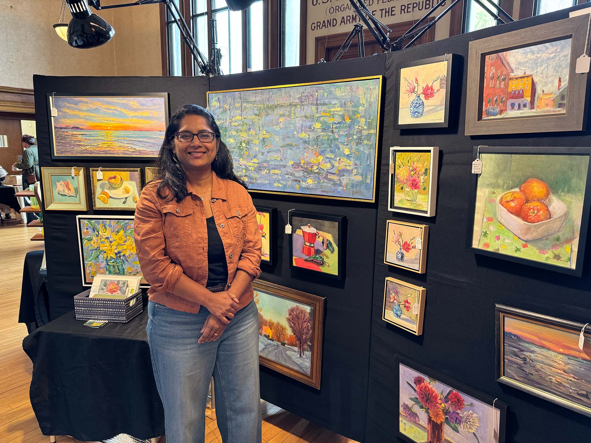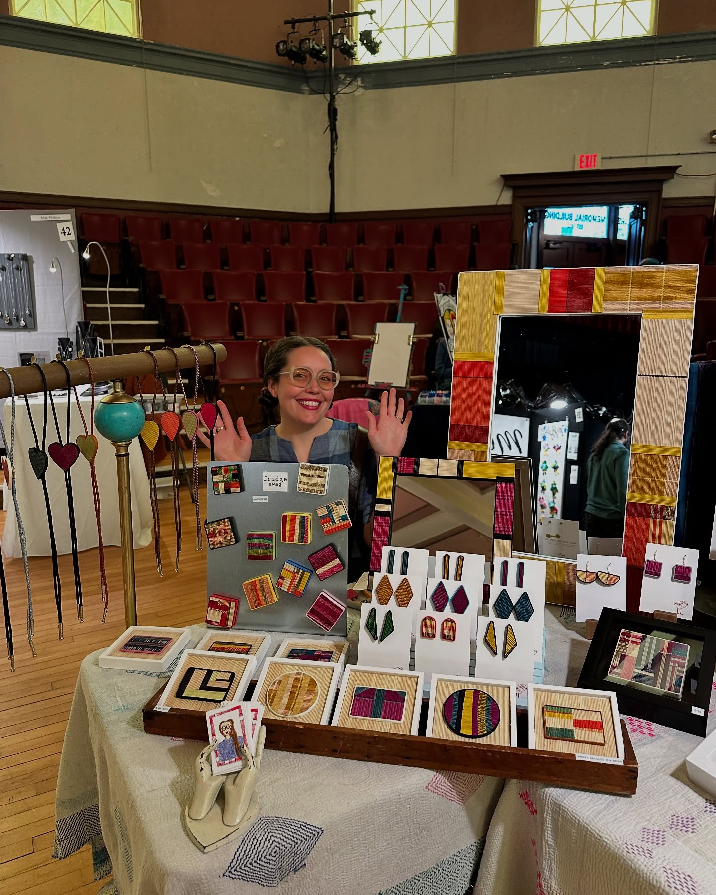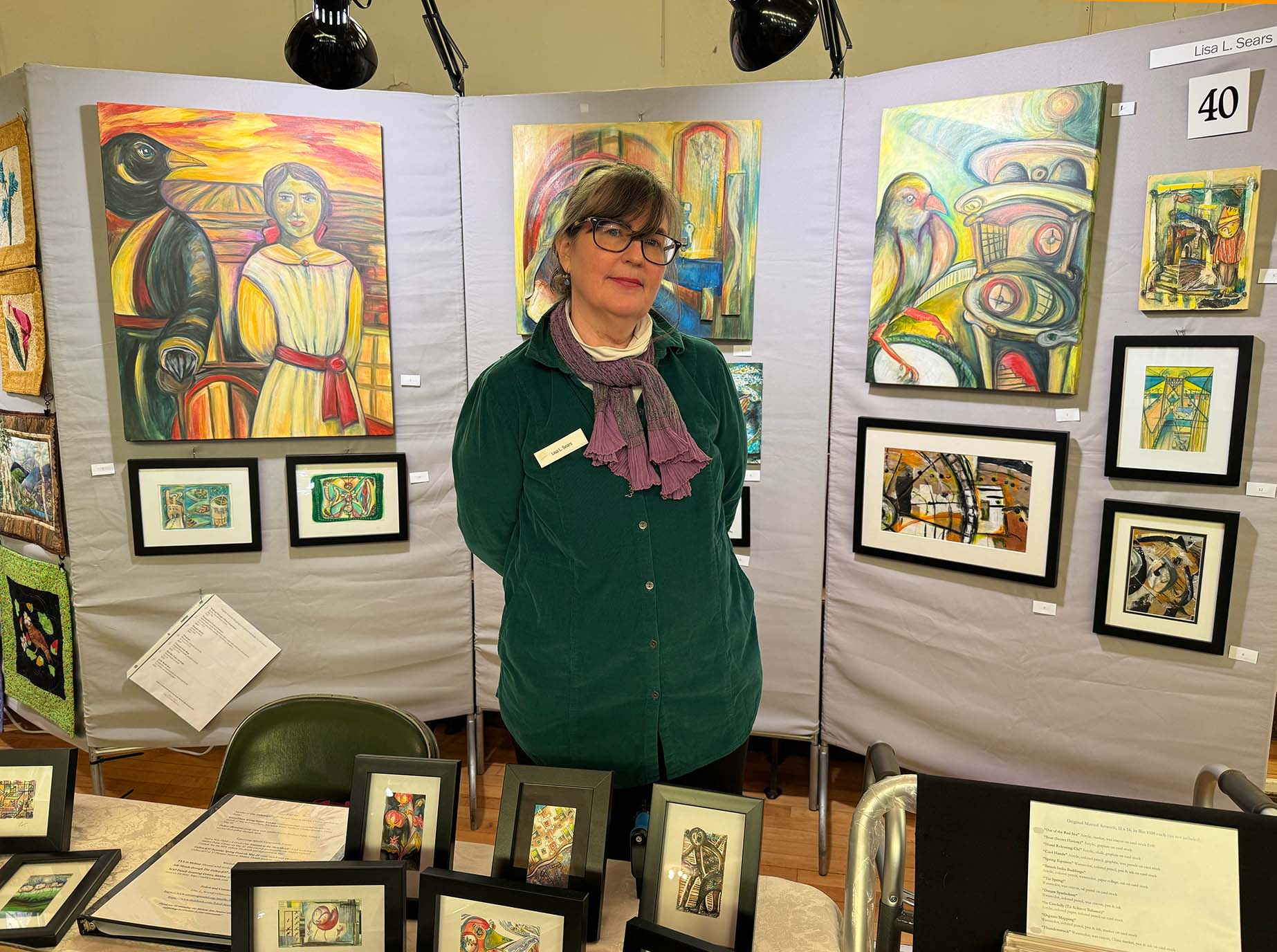 Over 40 artists had their work on display, and visitors enjoyed four different local bands, food trucks, caricatures, face painting, and a raffle. Follow Your Art Community Studios led a community art project on the stage, and this was the first year that Follow Your Art's Junior Artisan Fair was held on the lower level of Memorial Hall.