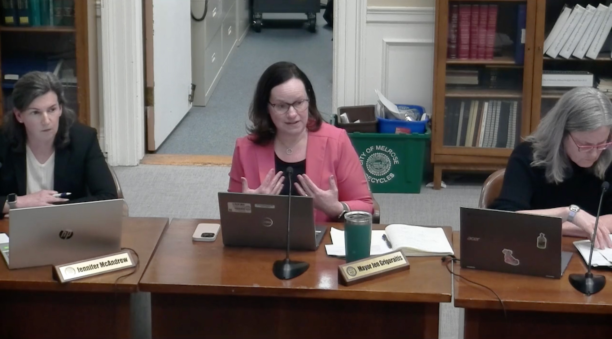 McAndrew concluded the meeting by talking about the gap between revenue that the city can legally collect due to Proposition 2½ and the cost of running the city and schools. “We’ve had community members ask us, ‘why can the schools run a $4 million deficit?’ The short answer, as you saw painfully articulated tonight, is that we can’t run a deficit. We have to have a balanced budget, so we have to cut services. We did that last year. We did other years prior, dozens of positions in the schools. We did it again tonight. We cut dozens of positions in the schools tonight. And, of course, we’re facing doing that in the rest of our city departments as well. We’re cutting service delivery to the families of Melrose. We actually have a service deficit.”