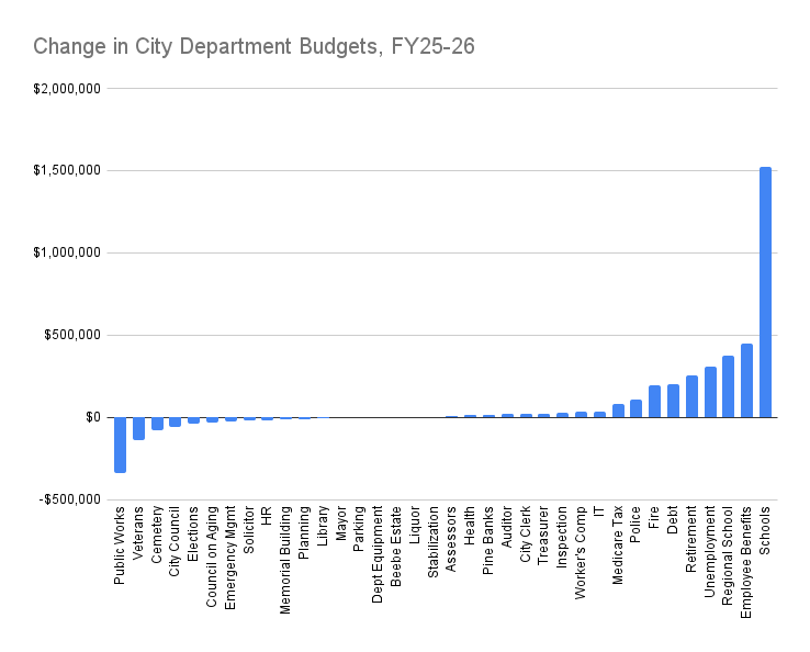 Over the last two weeks, as part of their budget process, the Appropriations and Oversight Committee of the City Council has heard from Mayor Jen Grigoraitis and several department heads about their planned budgets for Fiscal Year 2026 (FY26), which starts in July.