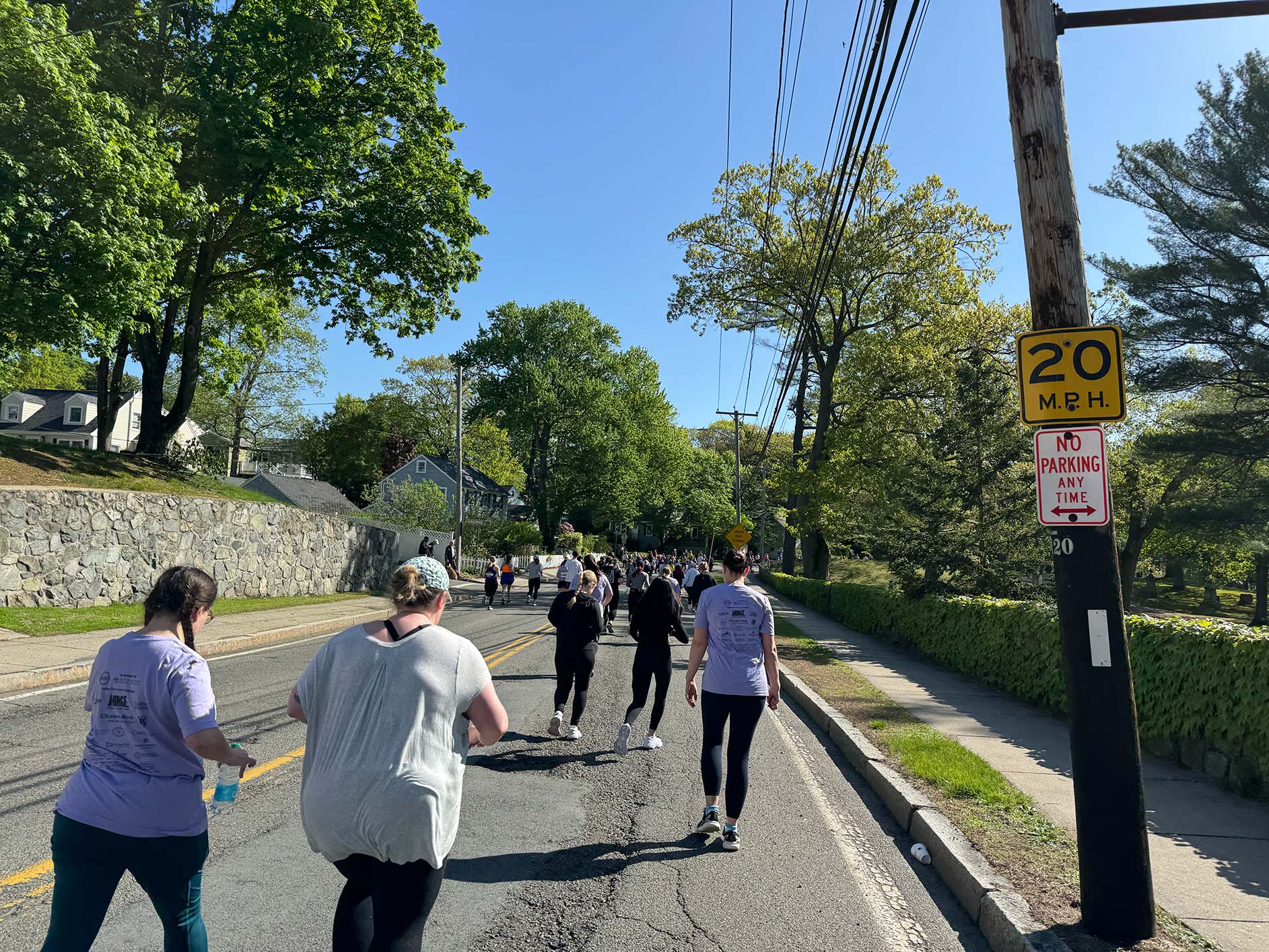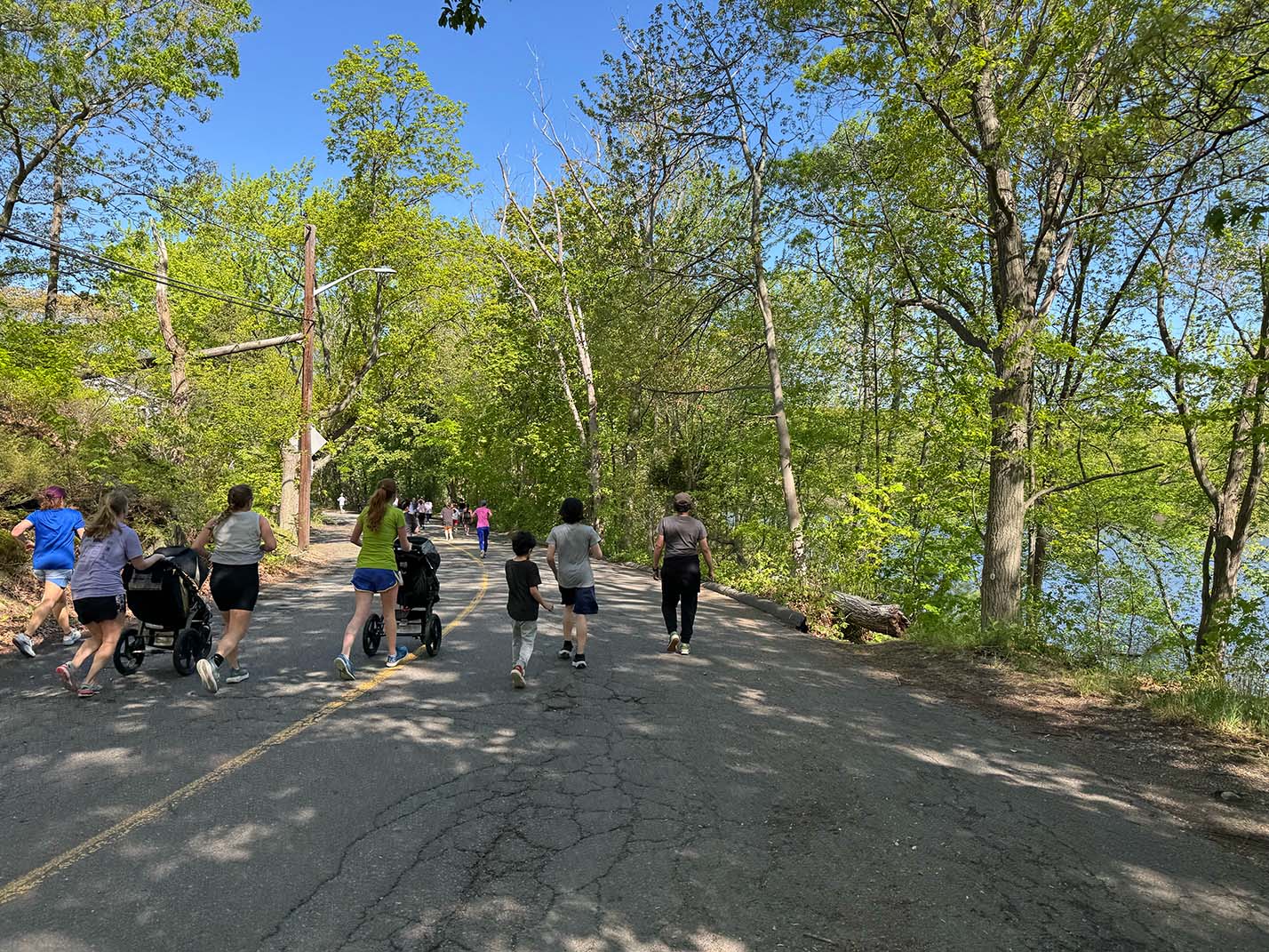 Many (although not all) of the runners and walkers were women, and some pushed strollers as they ran or coached older children as they ran together. Along the route, neighbors cheered the runners on with homemade signs, music, bubbles, and yelling encouragement. Police officers directed traffic at busy intersections to allow the race to keep moving.
