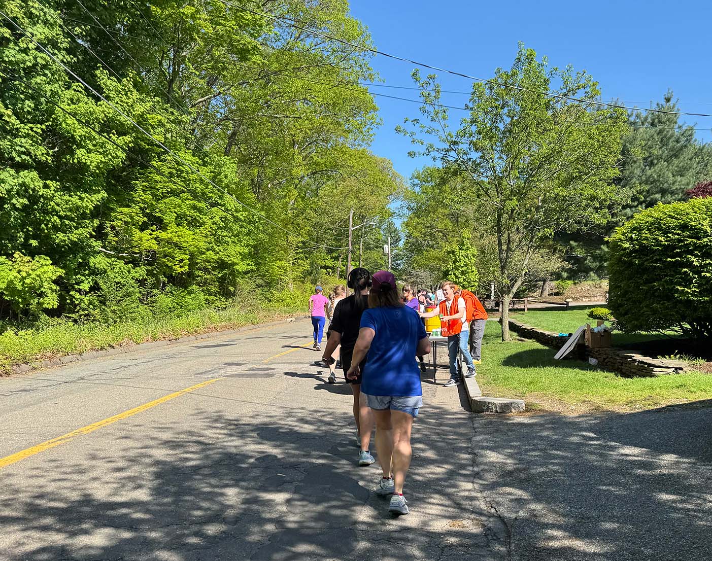 Members of the Melrose Running Club hand out water to runners and walkers around the halfway mark