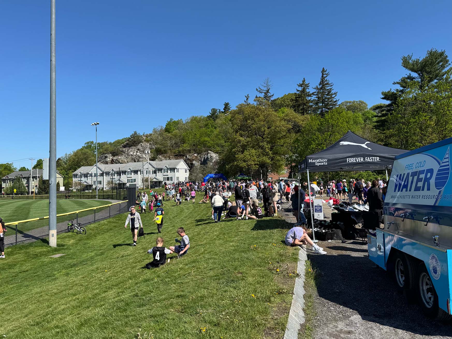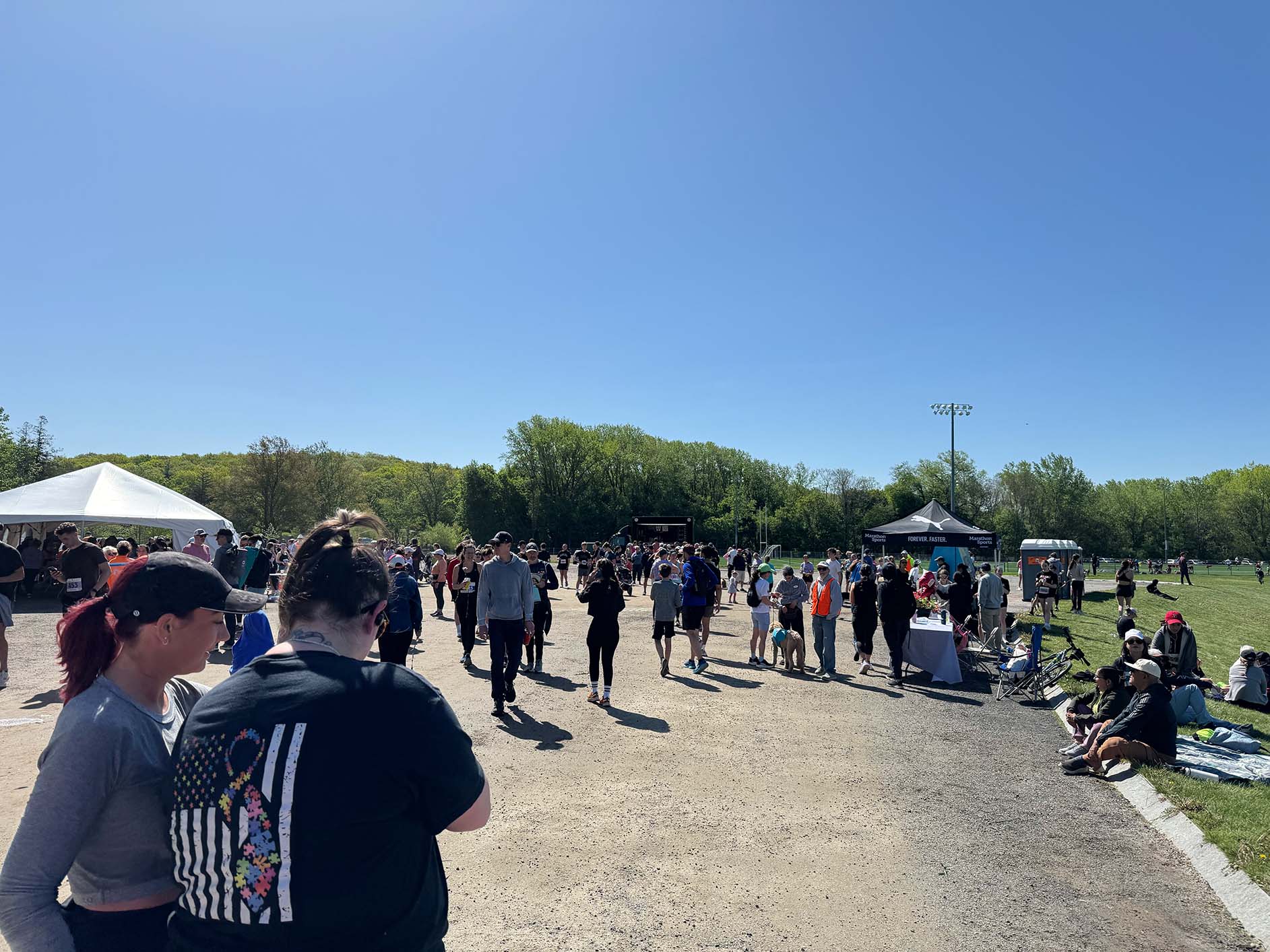 Runners cooling down at the finish line at Pine Banks Park