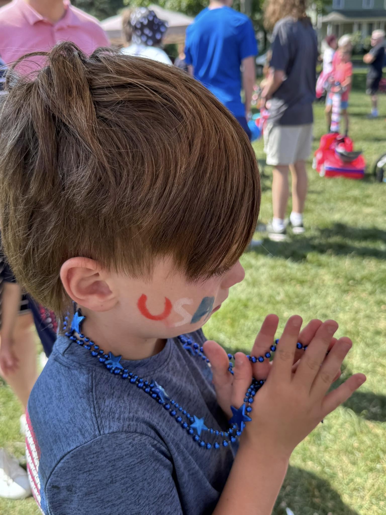 The program finished with America the Beautiful, and then the children were given flags and paraded around the lawn during Stars and Stripes Forever.