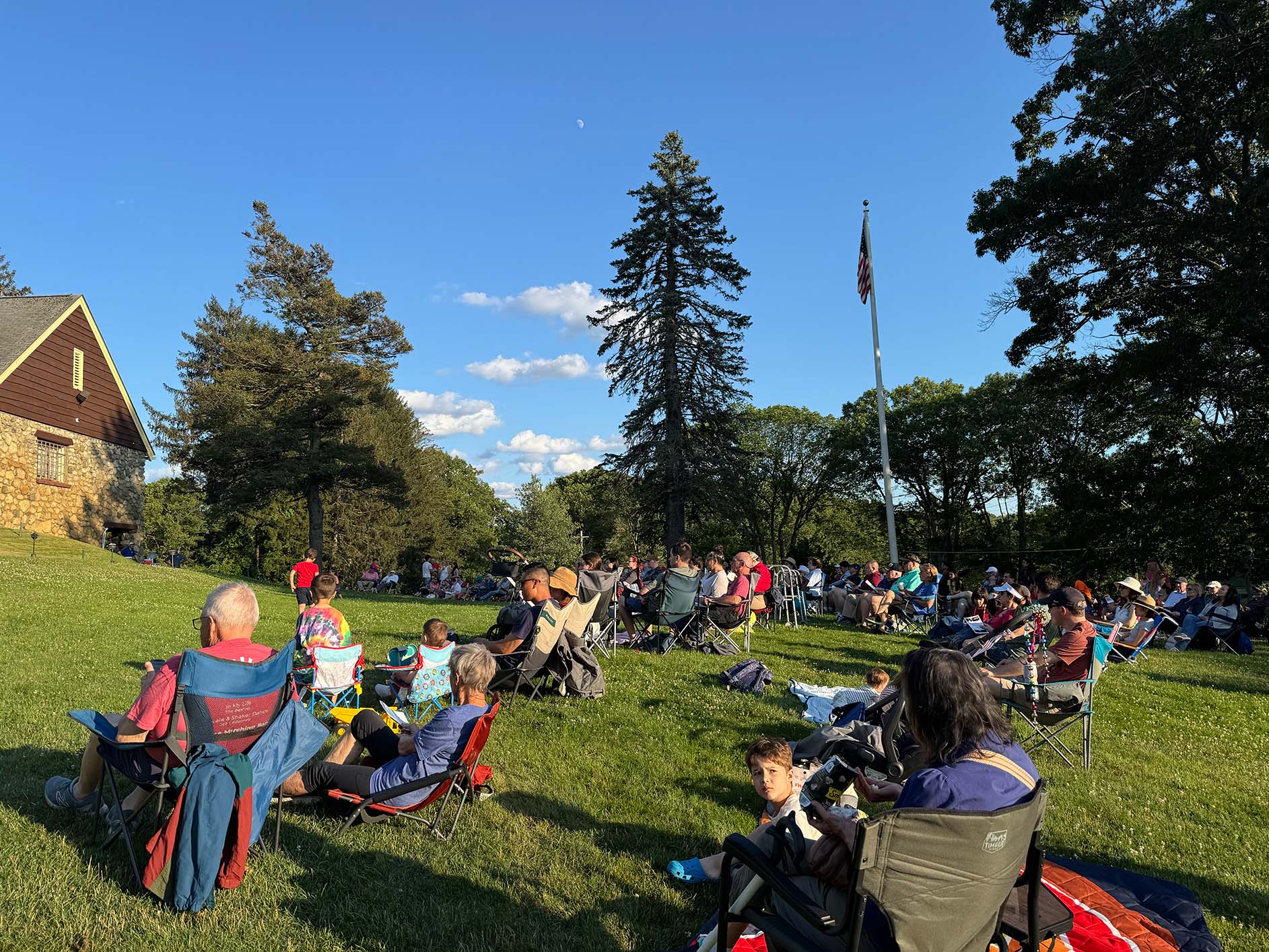 The outdoor concert, now in its 38th year, welcomed audience members of all ages. The Middlesex Concert Band, which has performed in Melrose on July 4th for many years now, played from the porch of the Mount Hood clubhouse to an audience spread out across the lawn, creating a small Tanglewood experience, right here in Melrose.