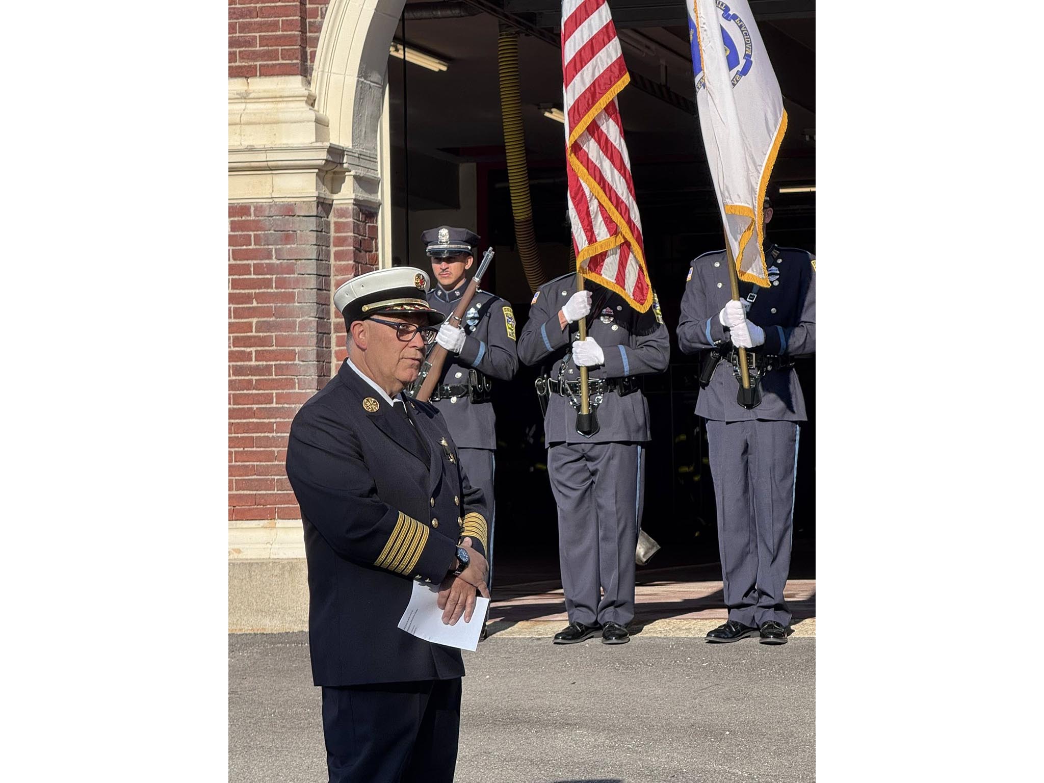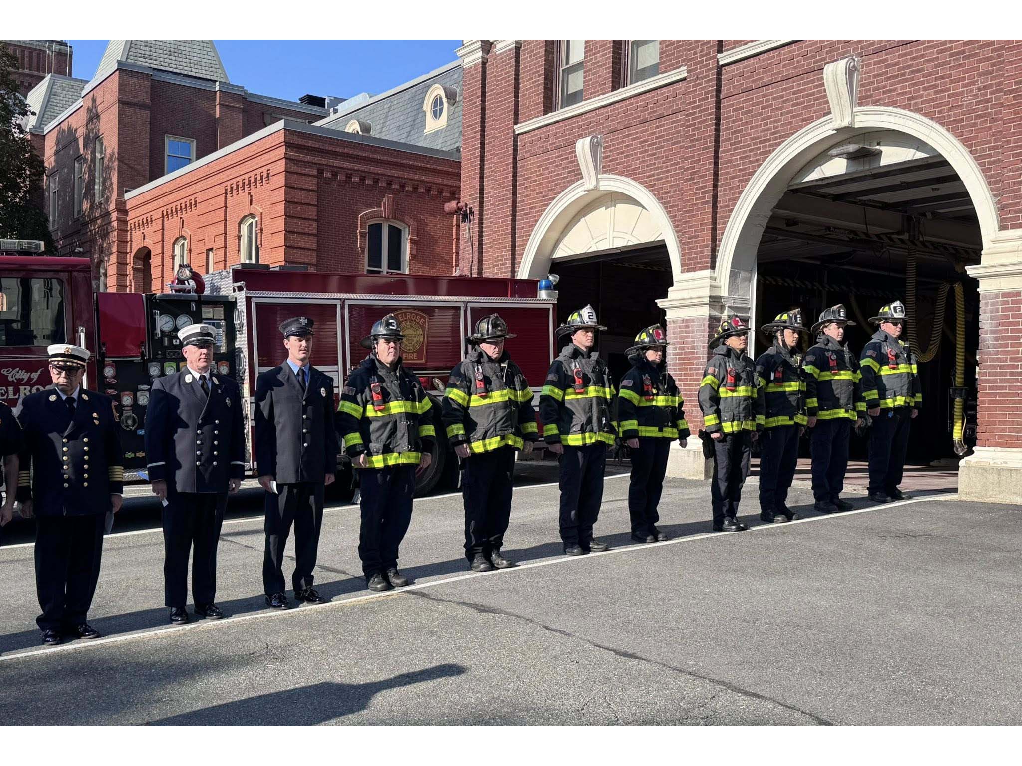 This morning, members of the Melrose Fire Department, the Melrose Police Department, and city officials met in front of the Central Fire Station to observe the 24th anniversary of the September 11th attacks and honor the nearly 3,000 lives that were lost in the attack, including over 400 first responders.