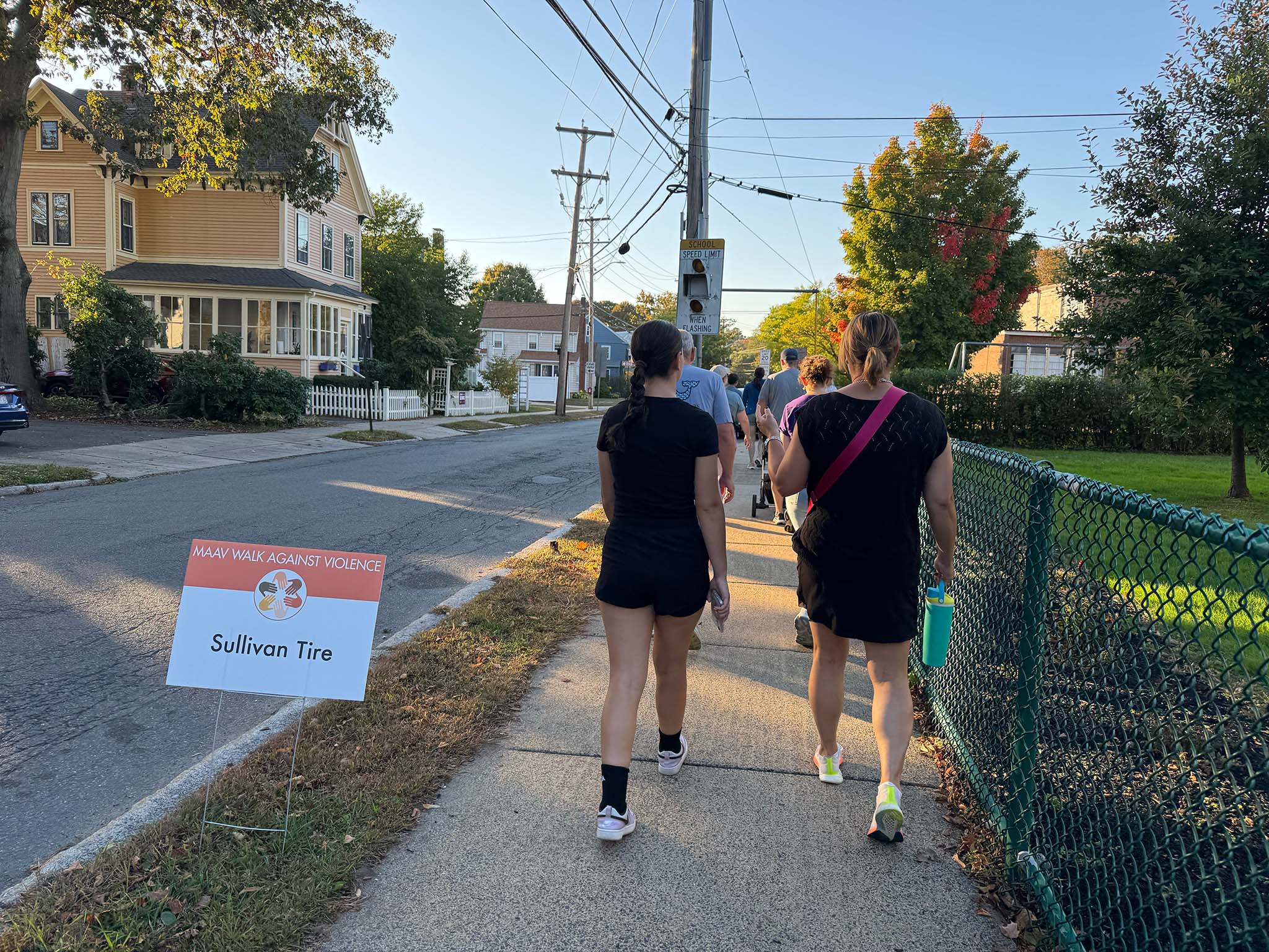 On Sunday afternoon, Melrosians of all ages attended a candlelight vigil for victims of domestic violence at the Melrose Veterans Memorial Middle School before proceeding on a 2-mile walk around the city to raise money for the Melrose Alliance Against Violence (MAAV) and raise awareness of the problem of domestic violence in our own community and across Massachusetts.