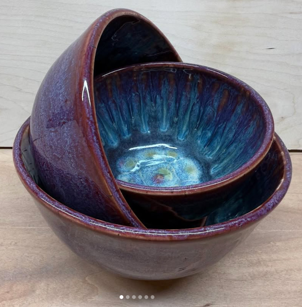 Allie Karthaus is new on the Melrose art scene - she started Alta Ceramics and set up a home pottery studio in her garage just this year. She is part of a group of potters who take classes together at Follow Your Art - initially from Michelle Ramadan of Meesh Pottery, until she moved to Paris earlier this year. She has a mix of larger bowls and smaller, more whimsical pieces like napkin rings and snowman sculptures with hand-knitted scarves.