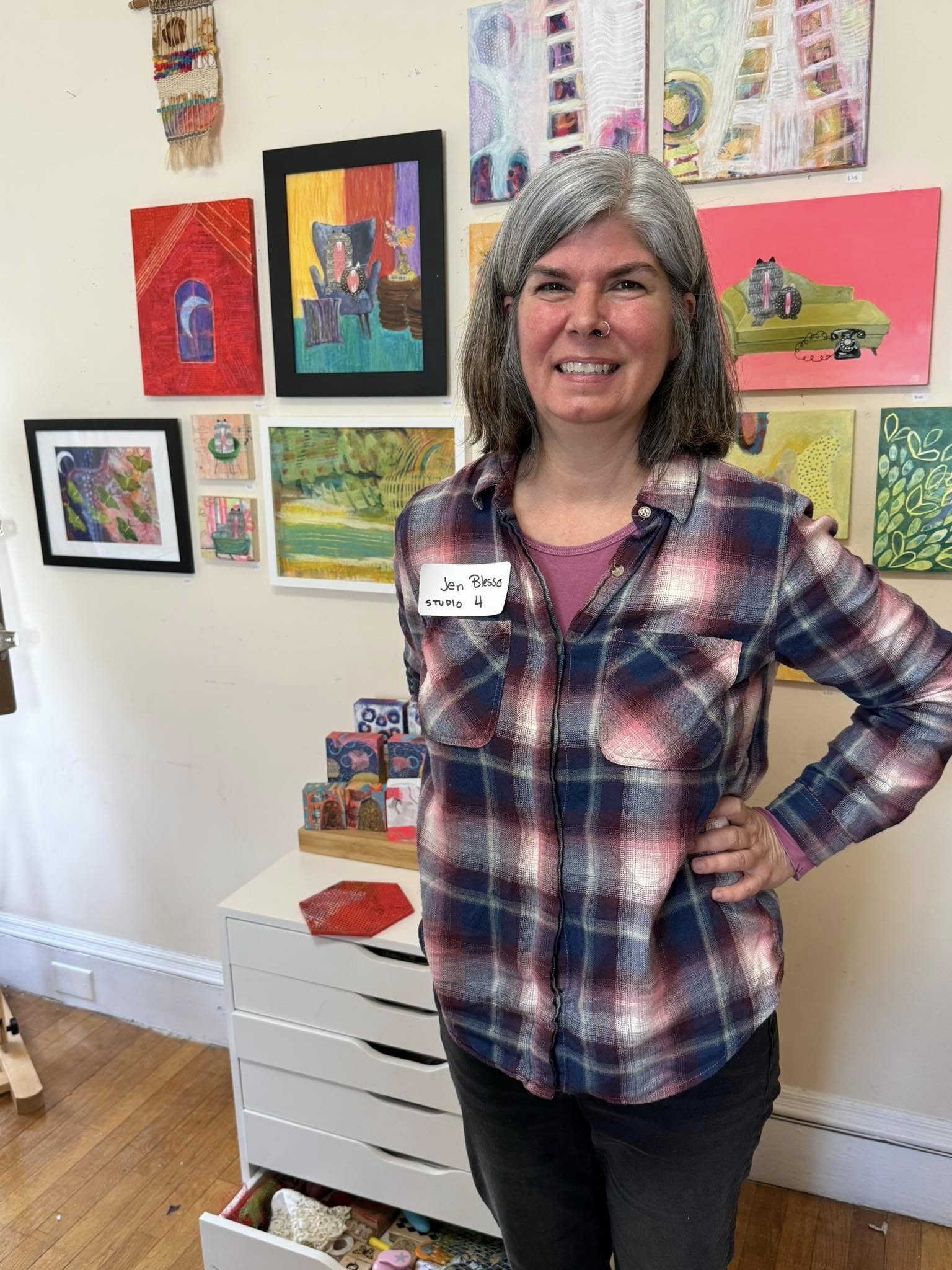 Jennifer Blesso will be displaying paintings and mixed media works