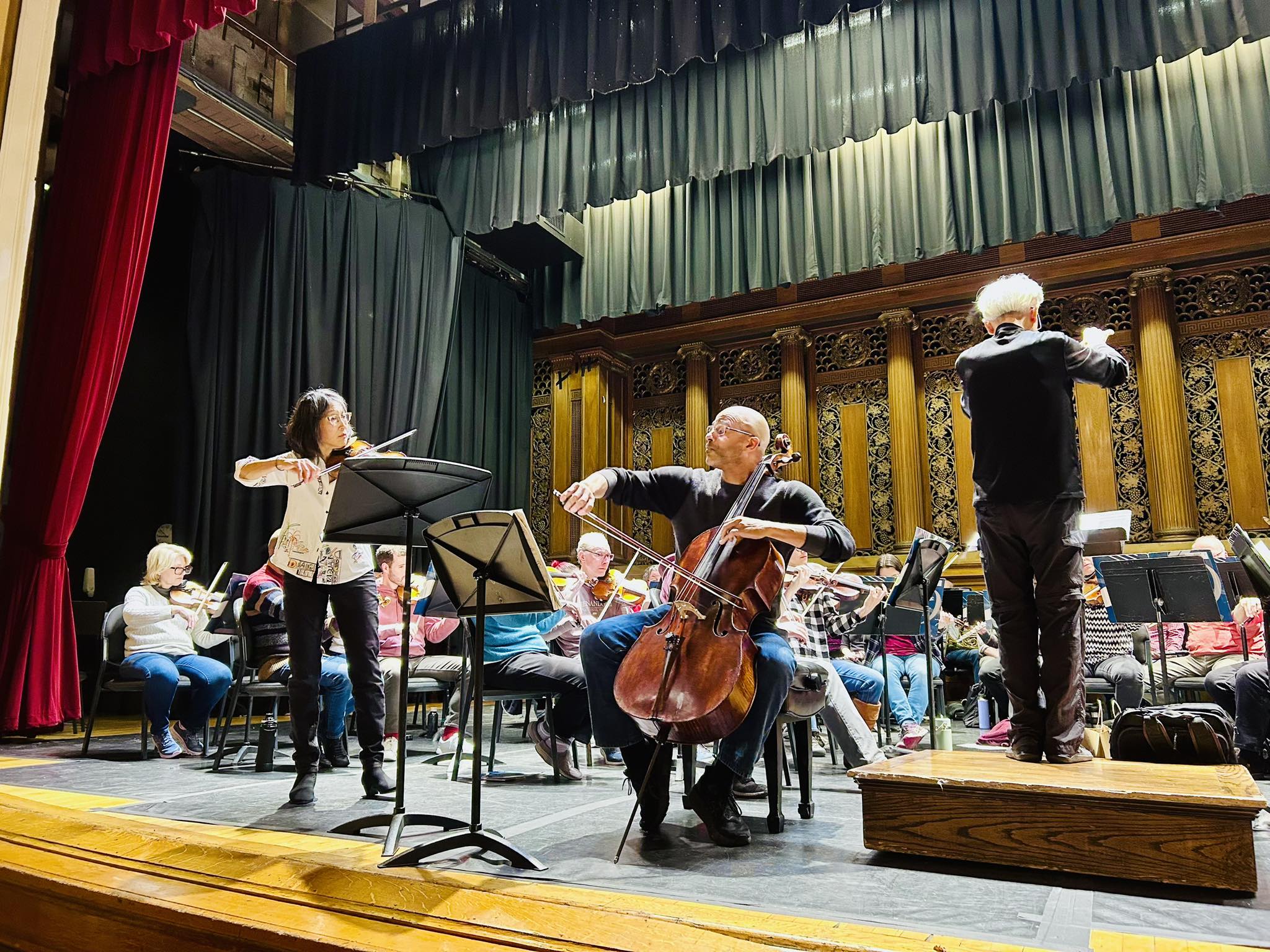 The Melrose Symphony called on Boston Symphony Orchestra players Lucia Lin and Owen Young, for a thrilling conclusion to the evening’s program. The two played in perfect sync - a testament to the years they have played together in the BSO - and the texture of the concerto allowed both players to show off their remarkable skill. They played the virtuosic passages with incredible ease, and they perfectly matched the tone of their instruments - Young making the cello’s high notes sound sweet and lovely to match Lin’s tone, and Lin in turn making the violin’s lowest notes sound rich and full to match Young’s on the lower passages. The orchestra provided a strong foundation for the soloists, and shone on the sections where they played alone.