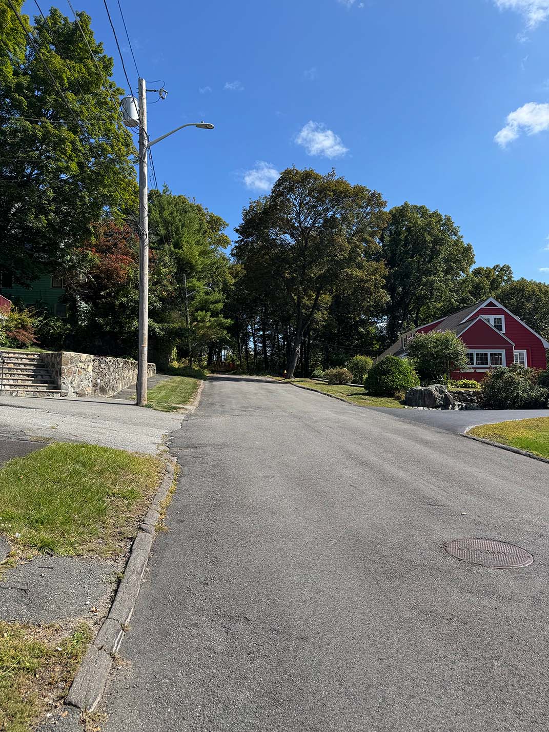 Summit Ave now - the planned building site is in the wooded area at the top of the street
