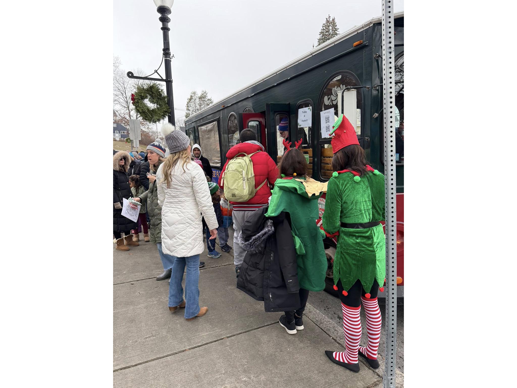 Santa and Mrs. Claus arrived by commuter rail at the Cedar Park station