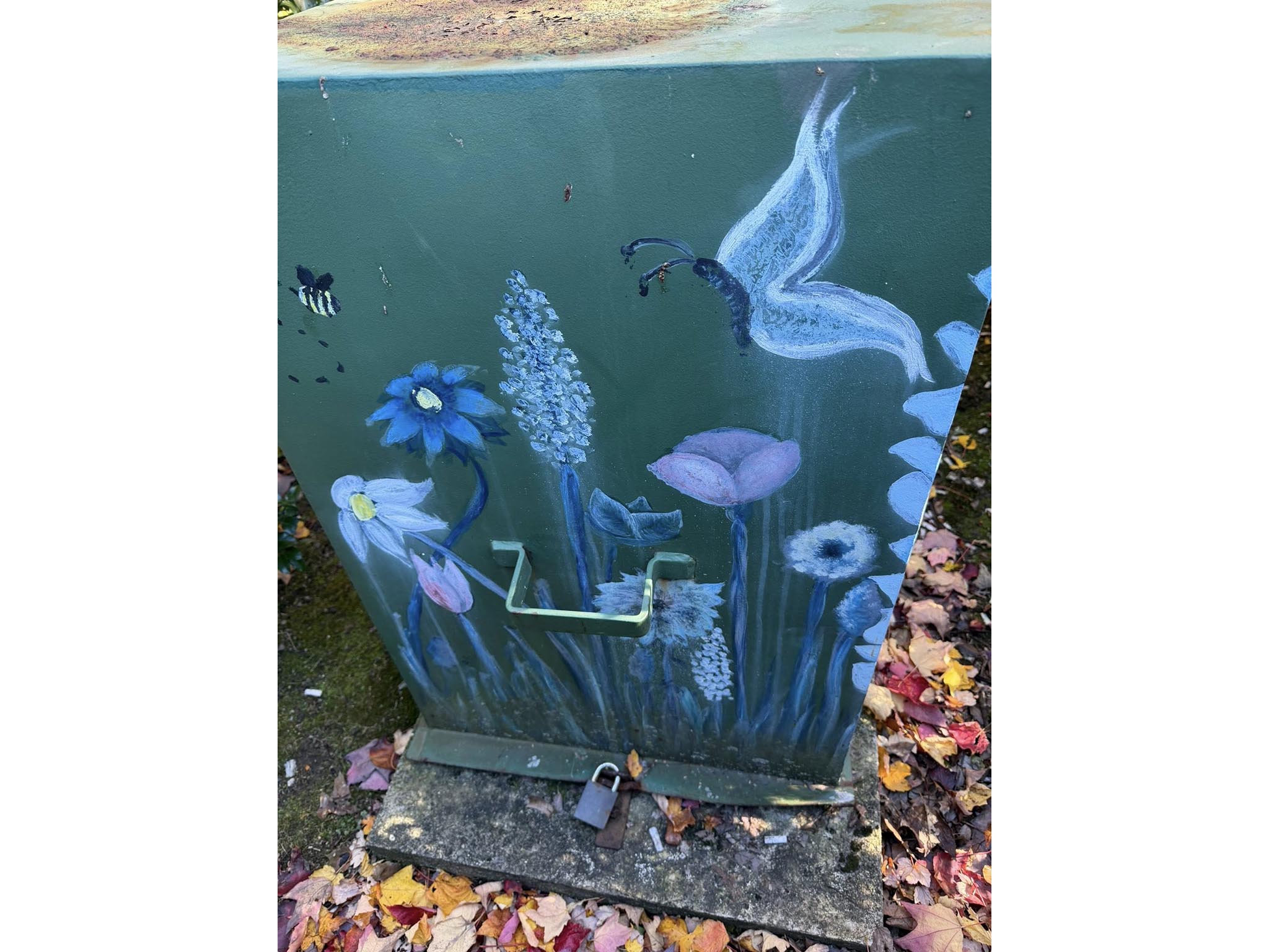 While little is known about its history, the side is signed "Painted by Melrose High Students," hinting at a student-created project that has quietly brightened this corner of the city.