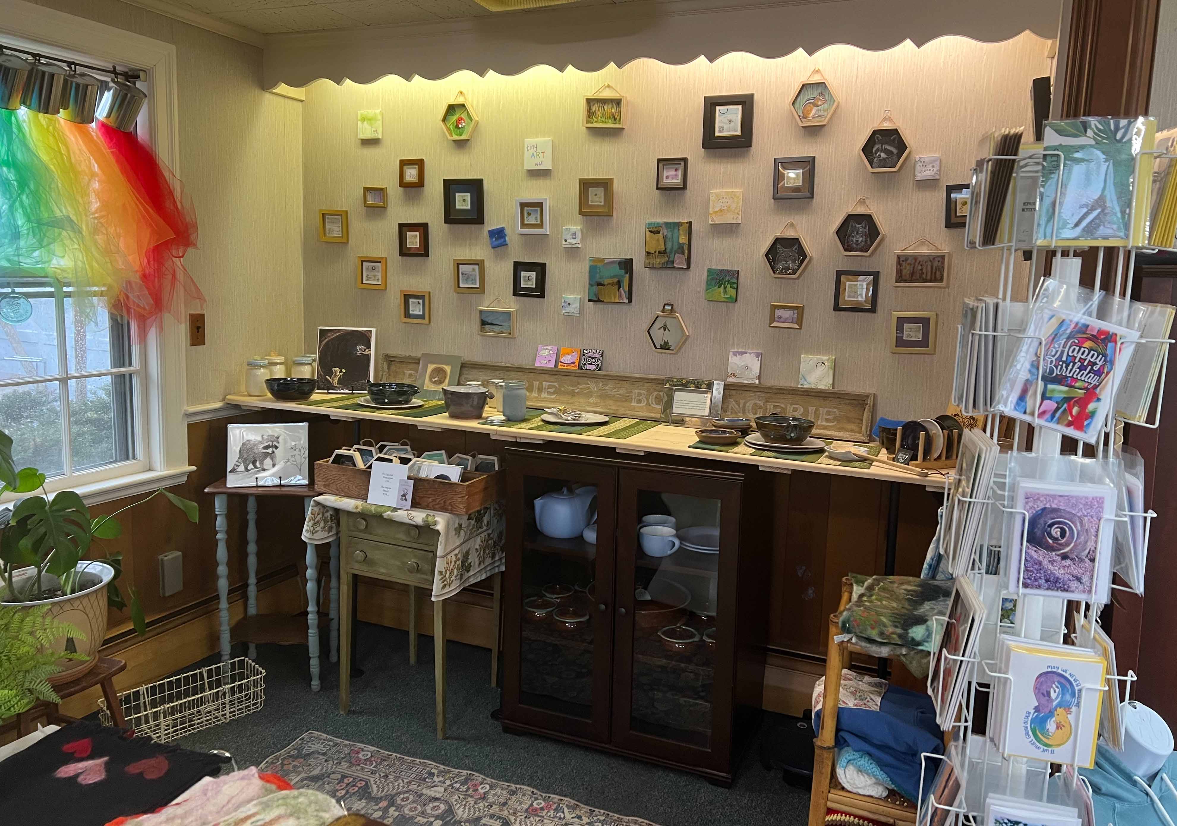 Their new location has more space for displaying the huge variety of gifts they have on sale, as well as a pottery studio and space for hosting events. Lesley Keegan, the shop’s owner, (who also makes some of the pottery sold in the shop) says that it’s been a challenge to restore the foot traffic they had at their location on West Emerson Street, but she loves the visibility of being on Main Street.