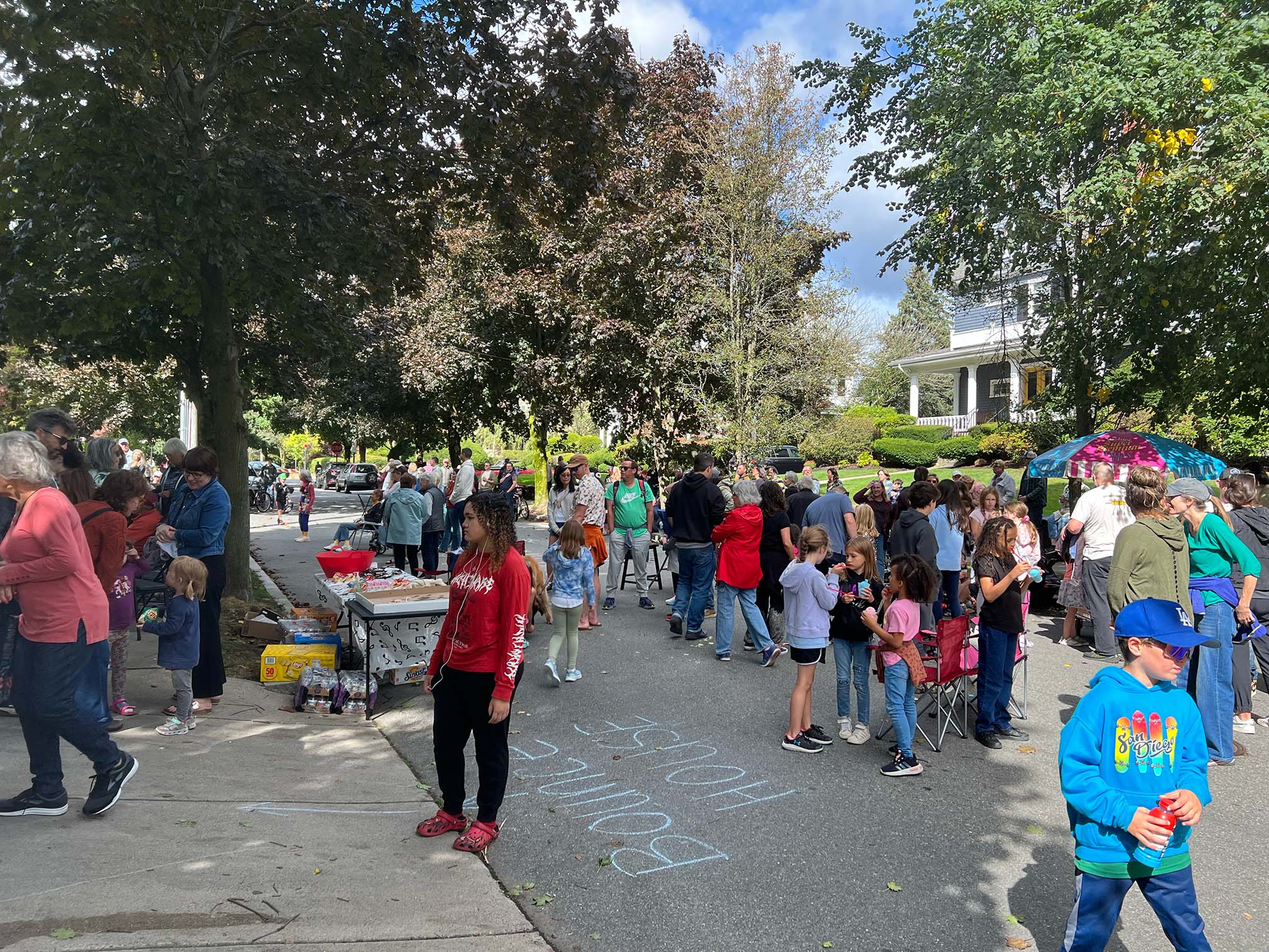 Saturday’s rain gave way to perfect autumn weather on Sunday, clear and slightly cool. In many neighborhoods, Porchfest performances formed part of a block party with closed-off streets, lemonade stands, and even grills, Italian ice, and food trucks at some porches. Idle Hands Brewery held Oktoberfest at the Beebe Estate on Sunday afternoon, bringing people out to enjoy beer, the La Qchara food truck, and music there as well.