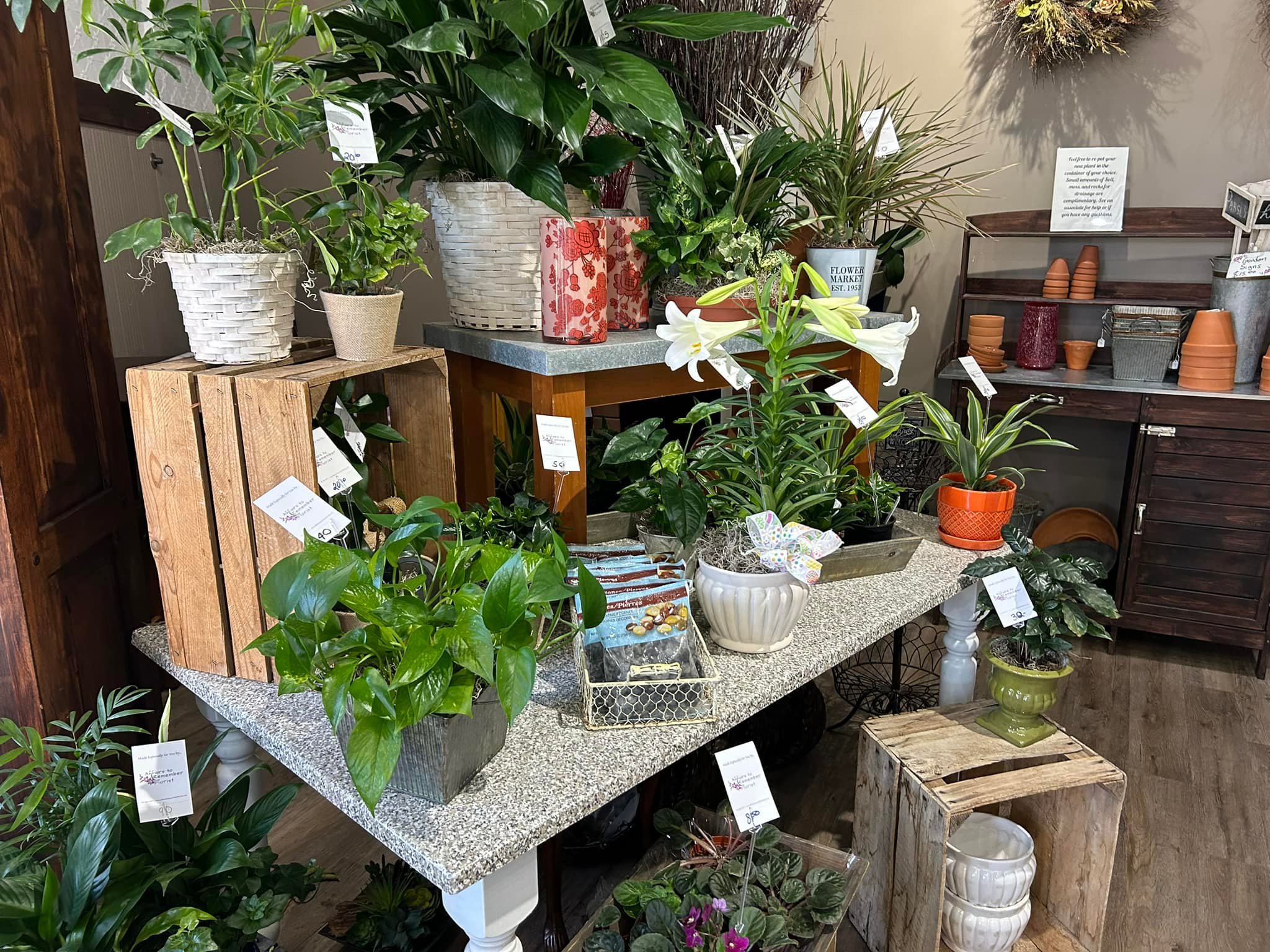 Affairs To Remember is a woman-owned company, they have a refrigerator packed with a variety of cut flowers and arrangements. Complementing the flowers they sell candy, balloons, and have an area where you can repot your plants. Something unique is they have a prom bar – you select your corsage or boutonniere, flowers and the bling. Lots of choices and very cool.