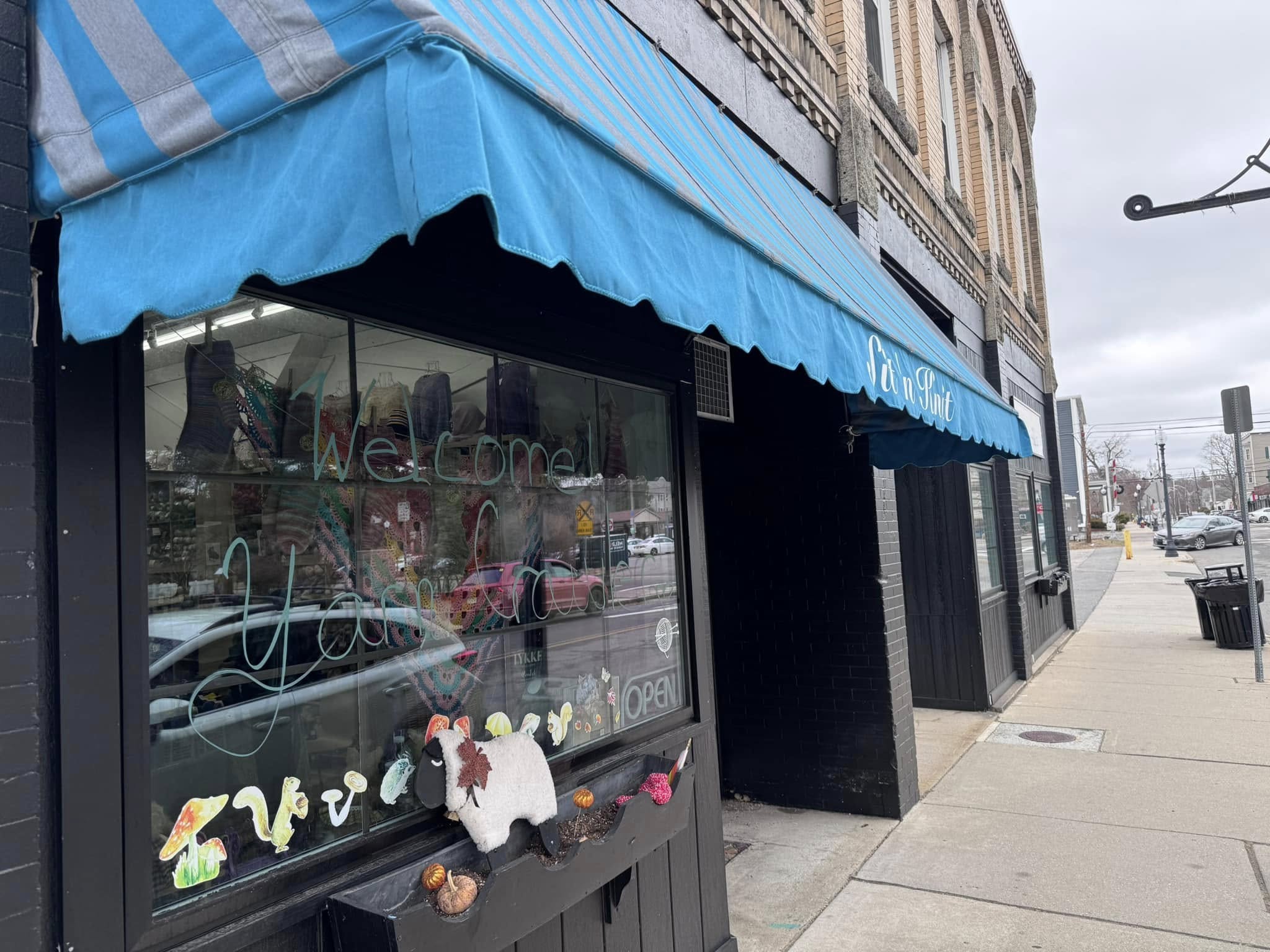 What drew me into the store was a flower box outside the window with no flowers but beautiful knitted hats with a note attached saying “I am not lost, if you are cold please take me”. What a kind and generous gesture. I had to investigate this store. I entered and was surrounded by every color of yarn imaginable. I immediately felt happy. I am not a knitter but could sense the creativity in the room.