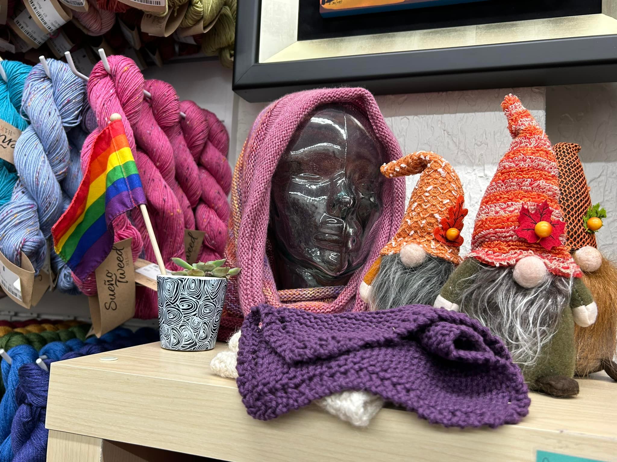 The shop has open knit hours where all skill levels are welcome to come crochet, knit, learn, and share adventures.
