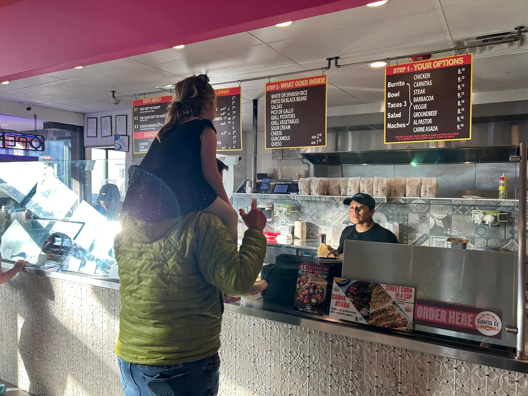 Santa Fe Burrito Grill and Bar: large restaurant with a lively bar.