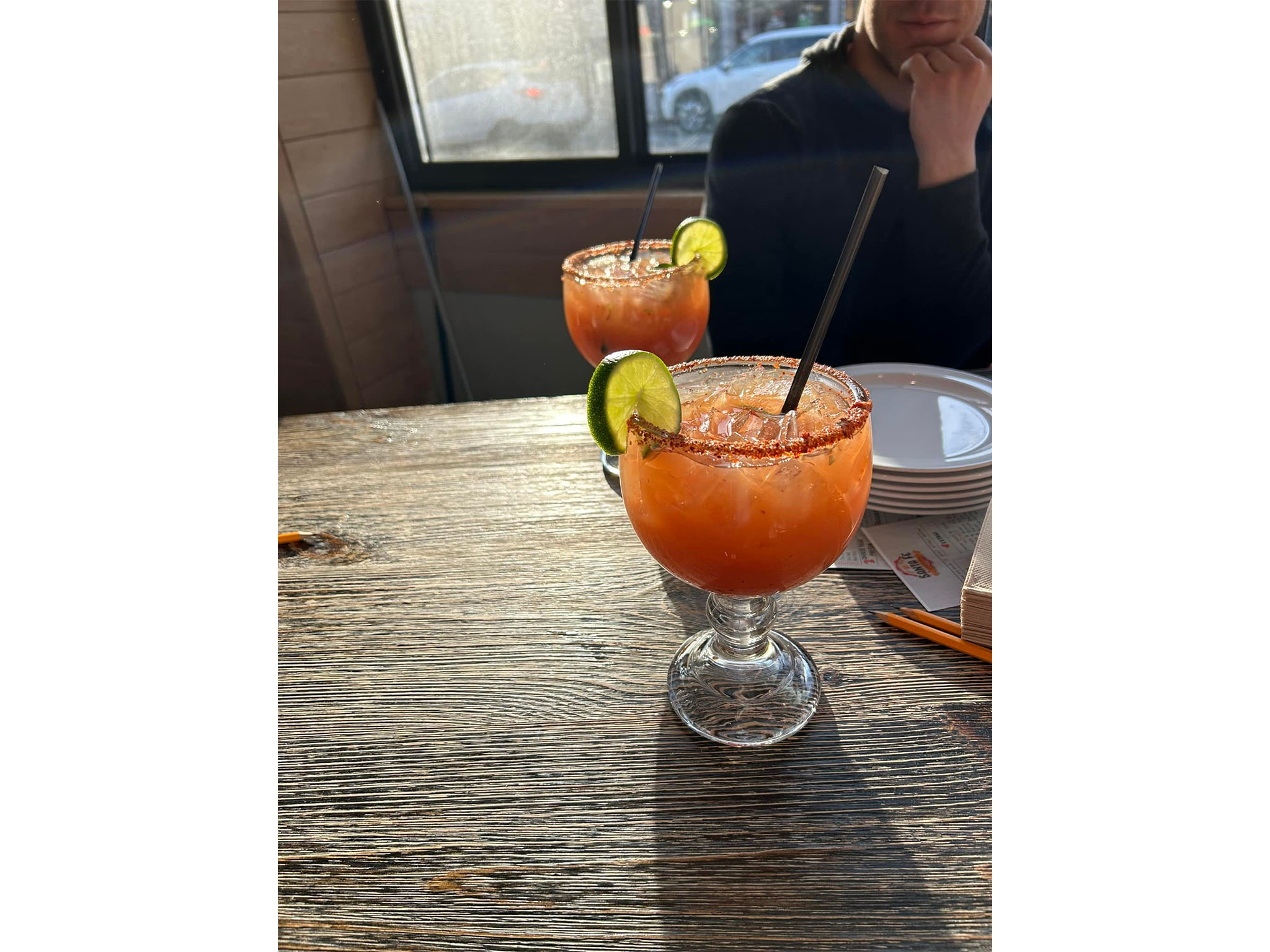 Tenoch Mexican: Opened in 2021, it is the smaller of the 3 restaurants, industrial décor with metal tables and chairs, big windows with lots of natural light, view of Main Street.