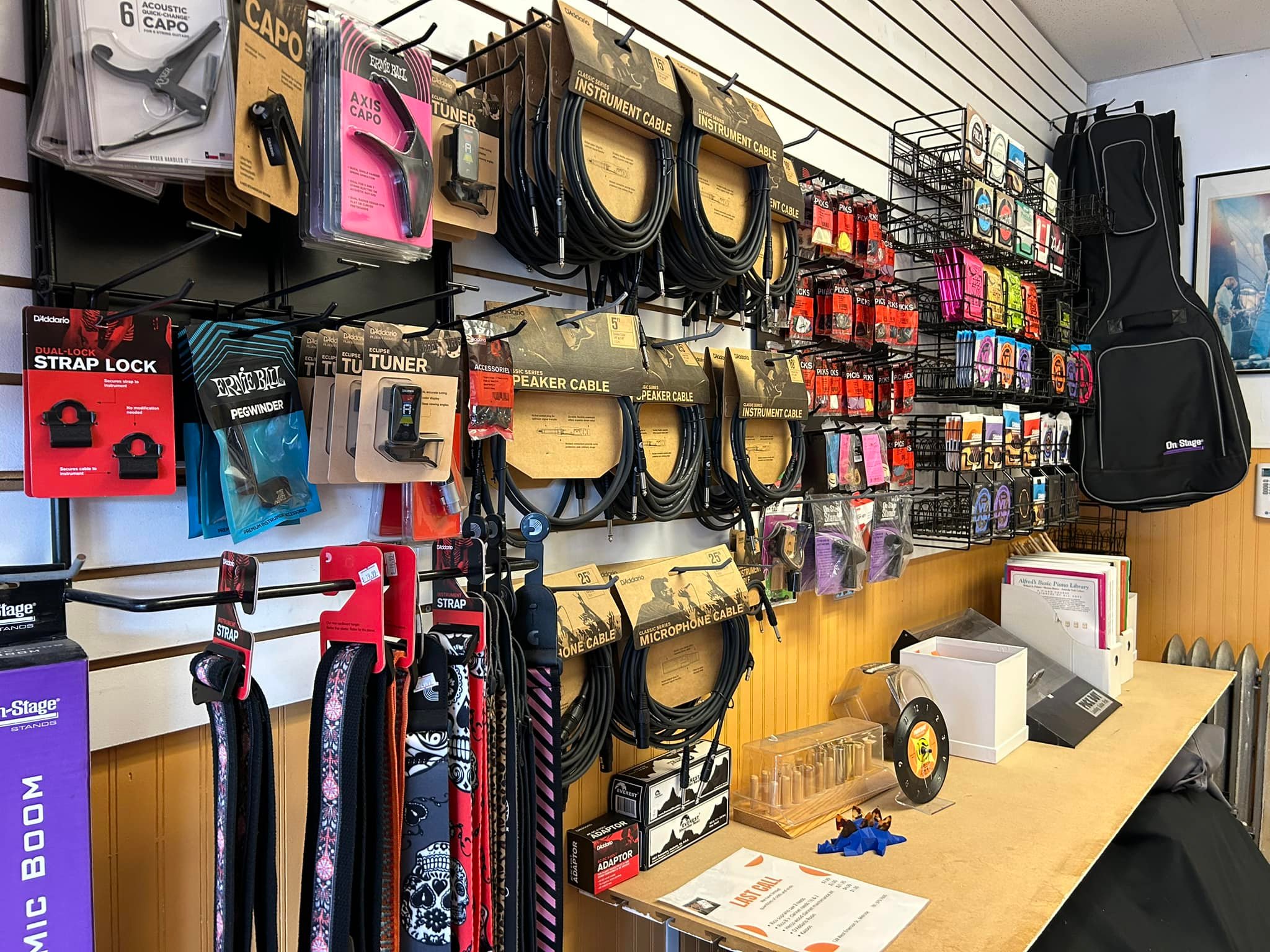 The retail store has gear and a wide variety of new and previously owned instruments and amps in stock as well as special orders. The Music Shop also repairs instruments.