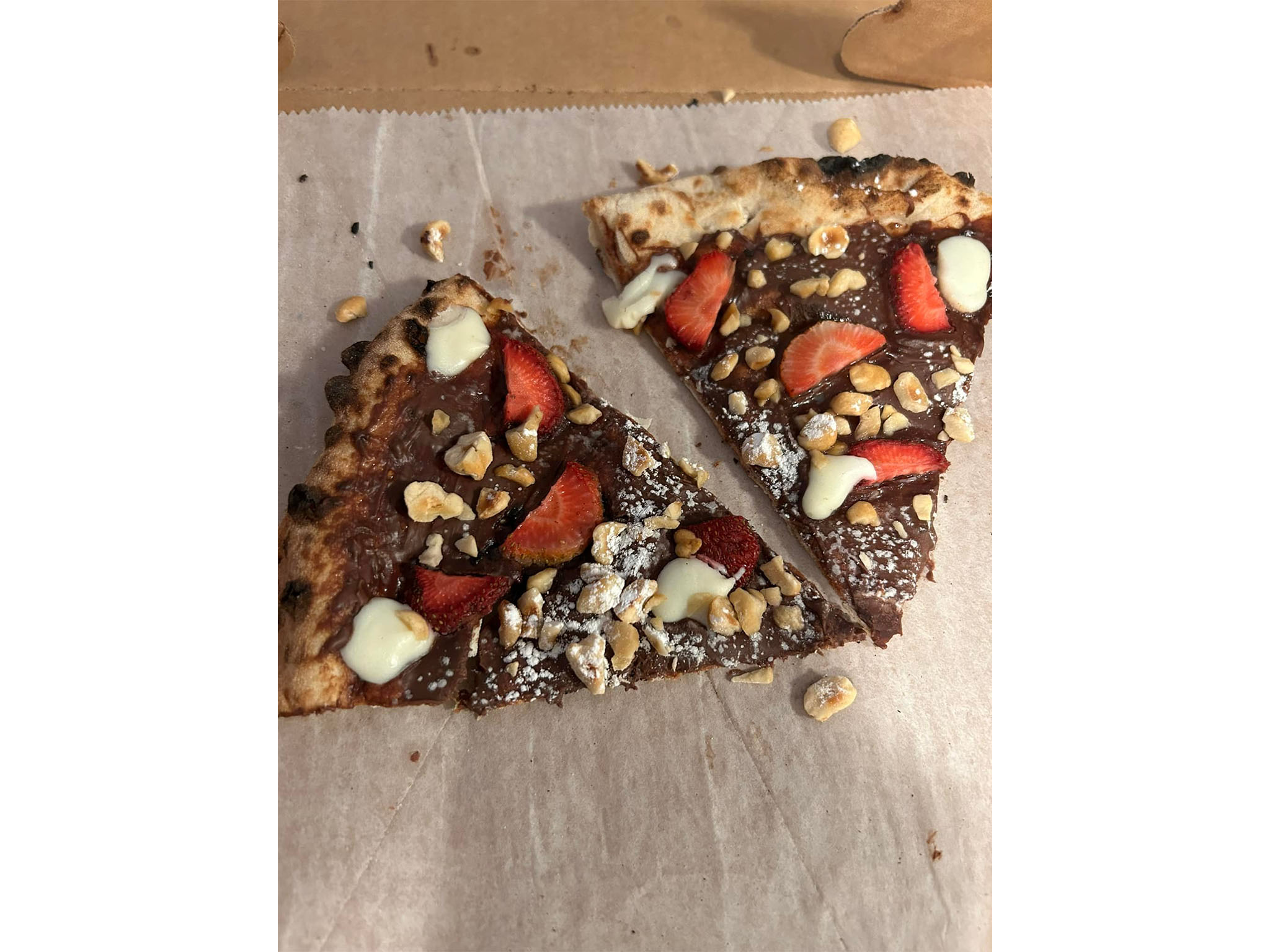 The show stopper is the Nutella pizza – a Nutella base on pizza crust with strawberries, hazelnut pieces, strawberries, and sweet cream – Mamma Mia!
