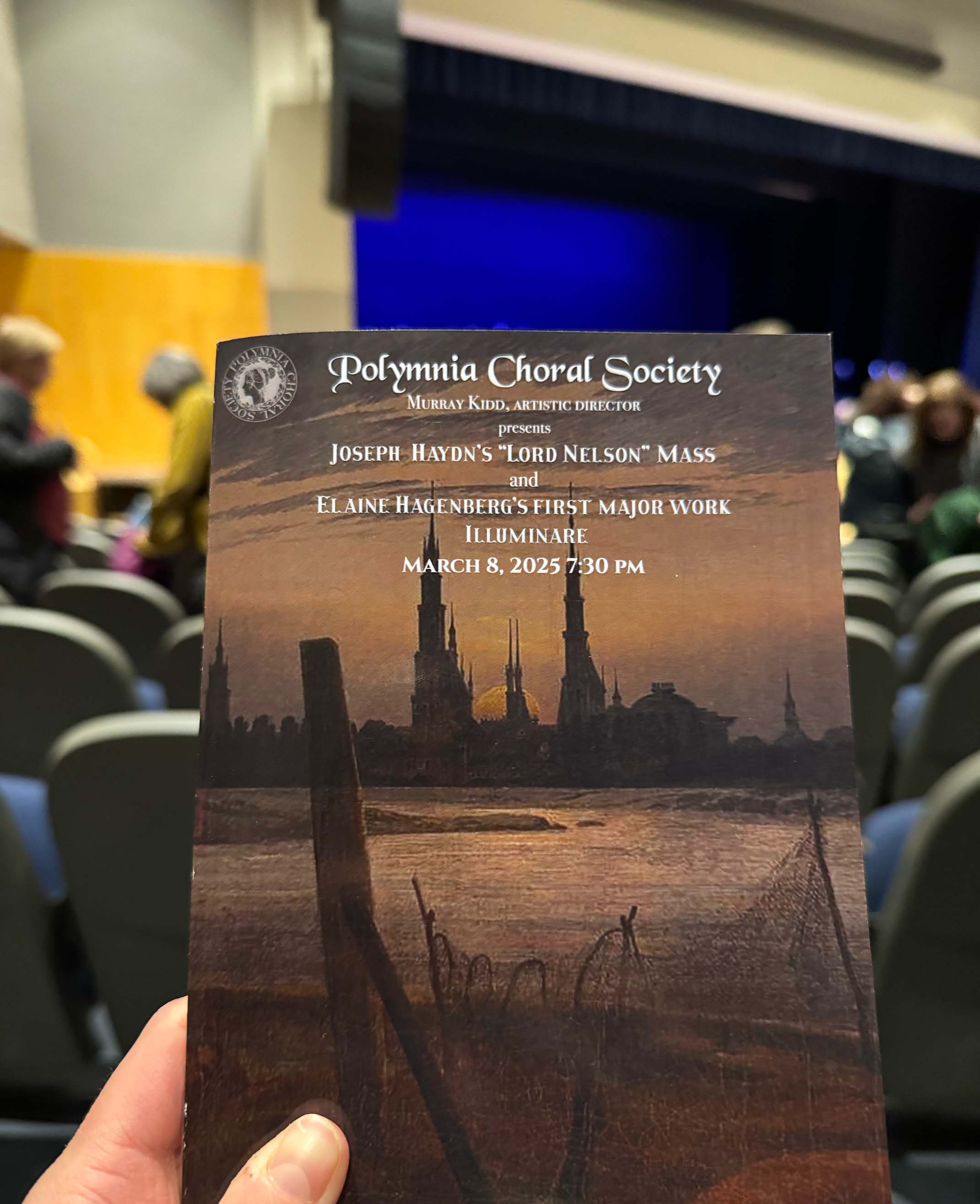 On Saturday night, Polymnia Choral Society performed Franz Joseph Haydn’s “Lord Nelson” Mass alongside contemporary composer Elaine Hagenberg’s Illuminare. The choir performed the two works with orchestra and professional soloists in the Melrose Veterans Memorial Middle School auditorium to a crowd of supporters and classical music lovers.