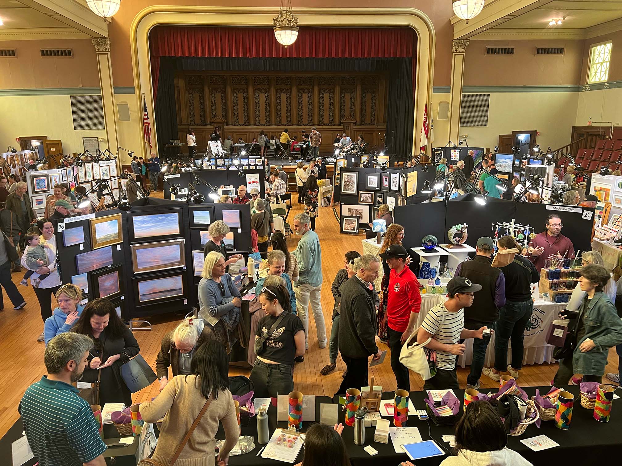Follow Your Art Community Studios will be running a free community art project on the stage, which is funded by a grant from the Melrose Cultural Council. This grant will also support face painting during the Arts Festival. Follow Your Art will also be running the Junior Artisan Fair on the lower level of Memorial Hall, where visitors can buy crafts of various kinds from local kids and teens.