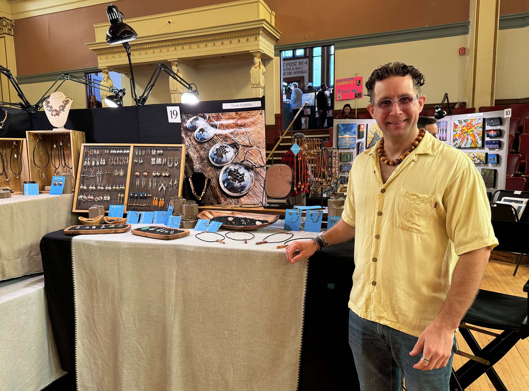 Over 40 artists had their work on display, and visitors enjoyed four different local bands, food trucks, caricatures, face painting, and a raffle. Follow Your Art Community Studios led a community art project on the stage, and this was the first year that Follow Your Art's Junior Artisan Fair was held on the lower level of Memorial Hall.