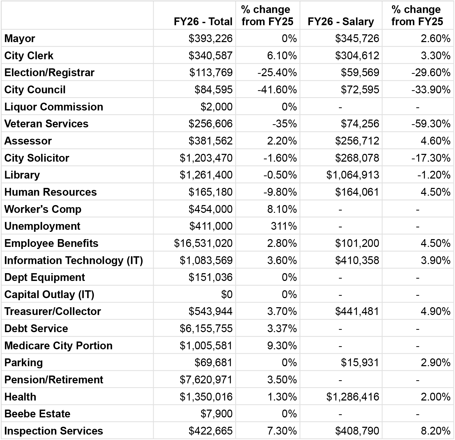 Over the last two weeks, as part of their budget process, the Appropriations and Oversight Committee of the City Council has heard from Mayor Jen Grigoraitis and several department heads about their planned budgets for Fiscal Year 2026 (FY26), which starts in July.