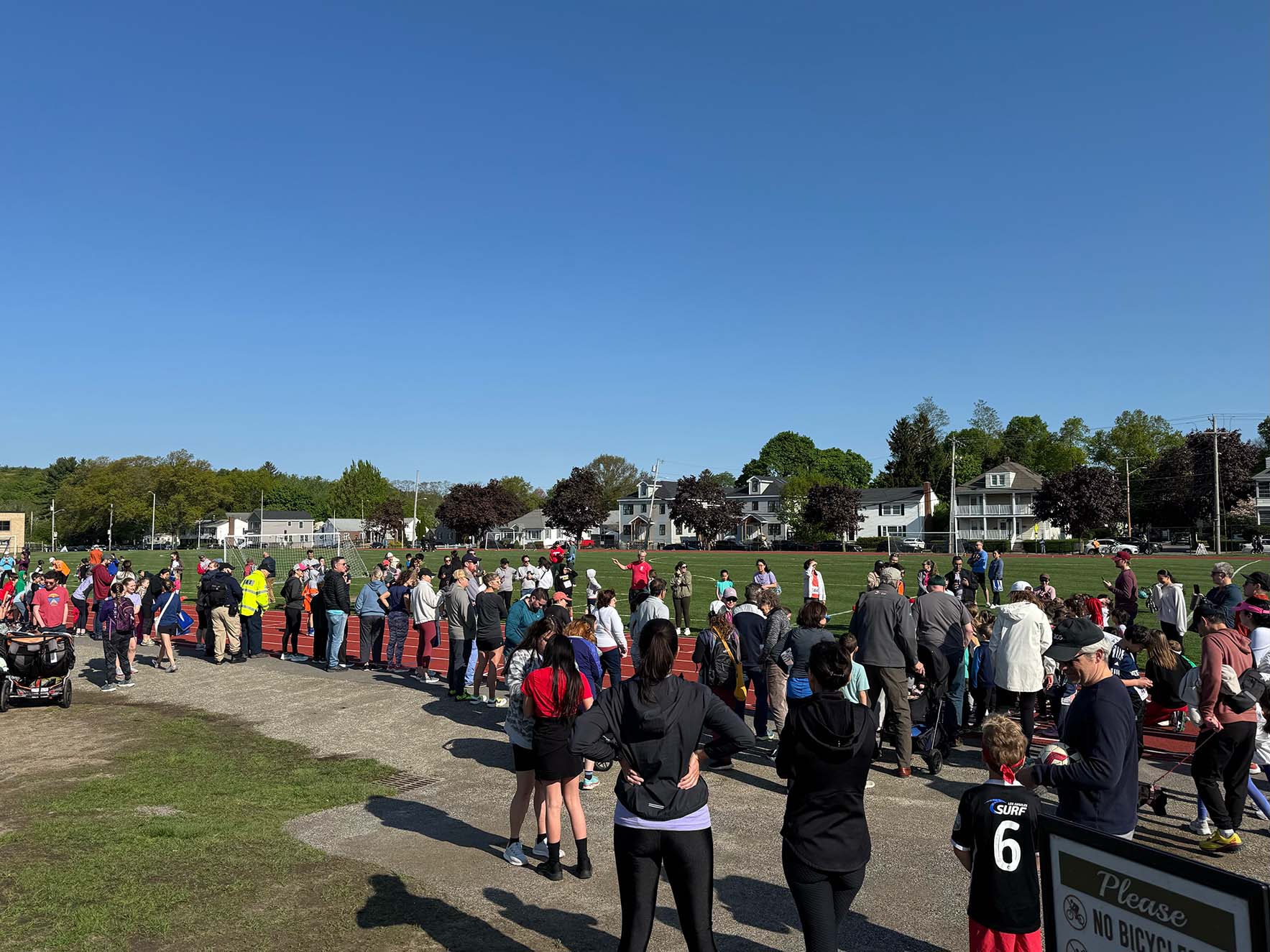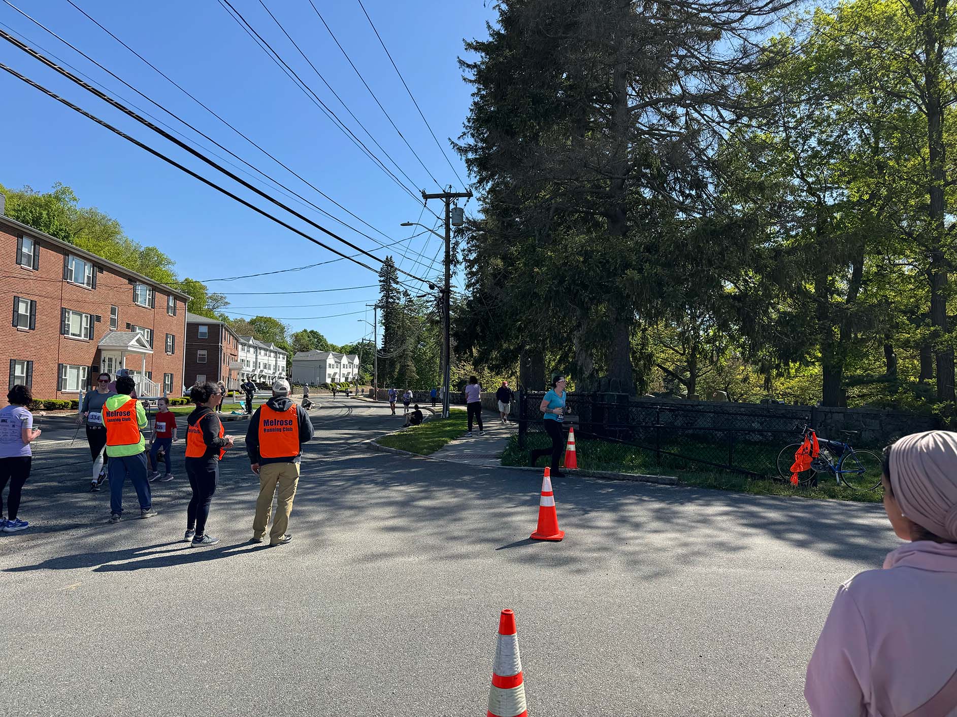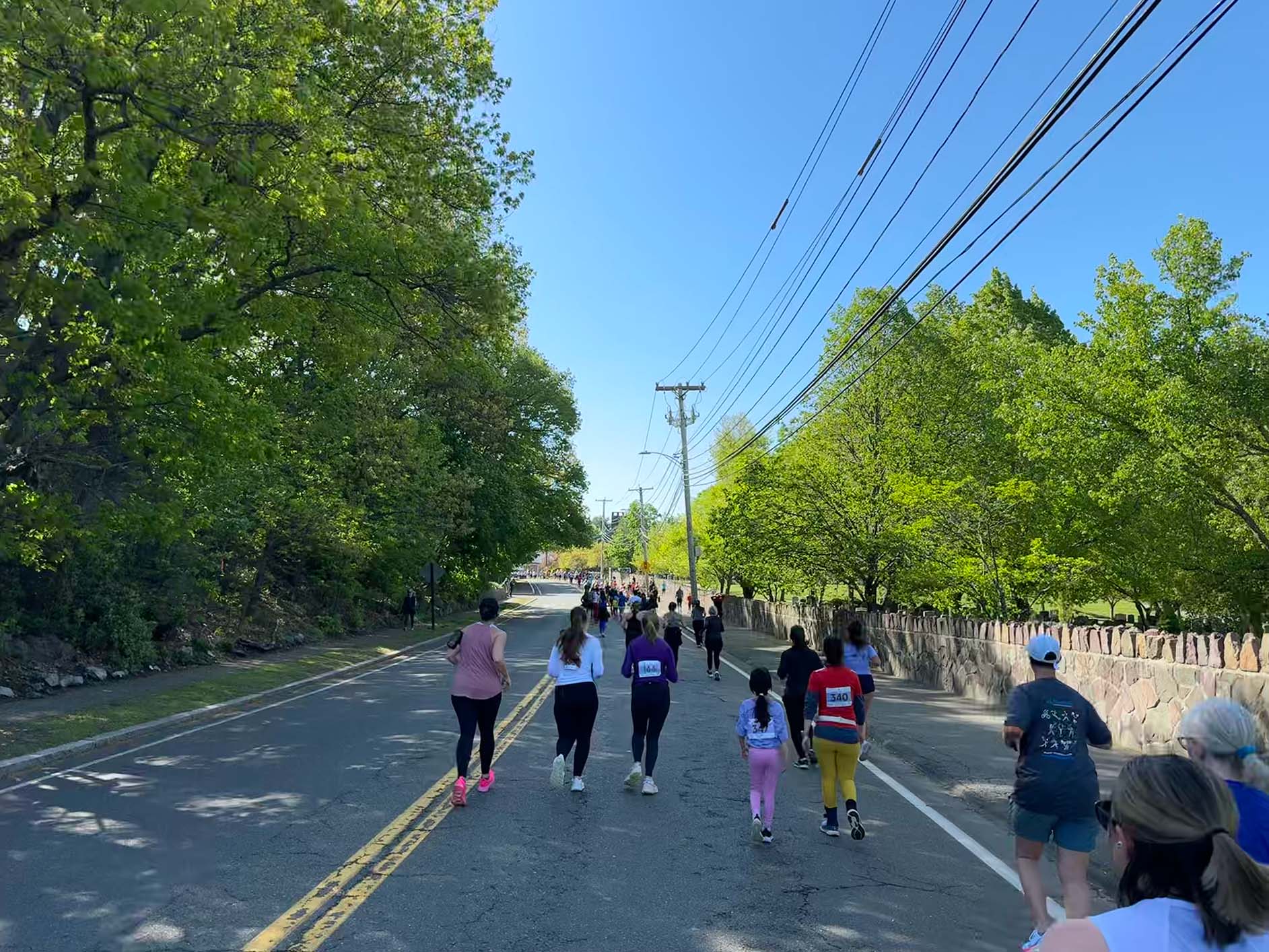 Many (although not all) of the runners and walkers were women, and some pushed strollers as they ran or coached older children as they ran together. Along the route, neighbors cheered the runners on with homemade signs, music, bubbles, and yelling encouragement. Police officers directed traffic at busy intersections to allow the race to keep moving.