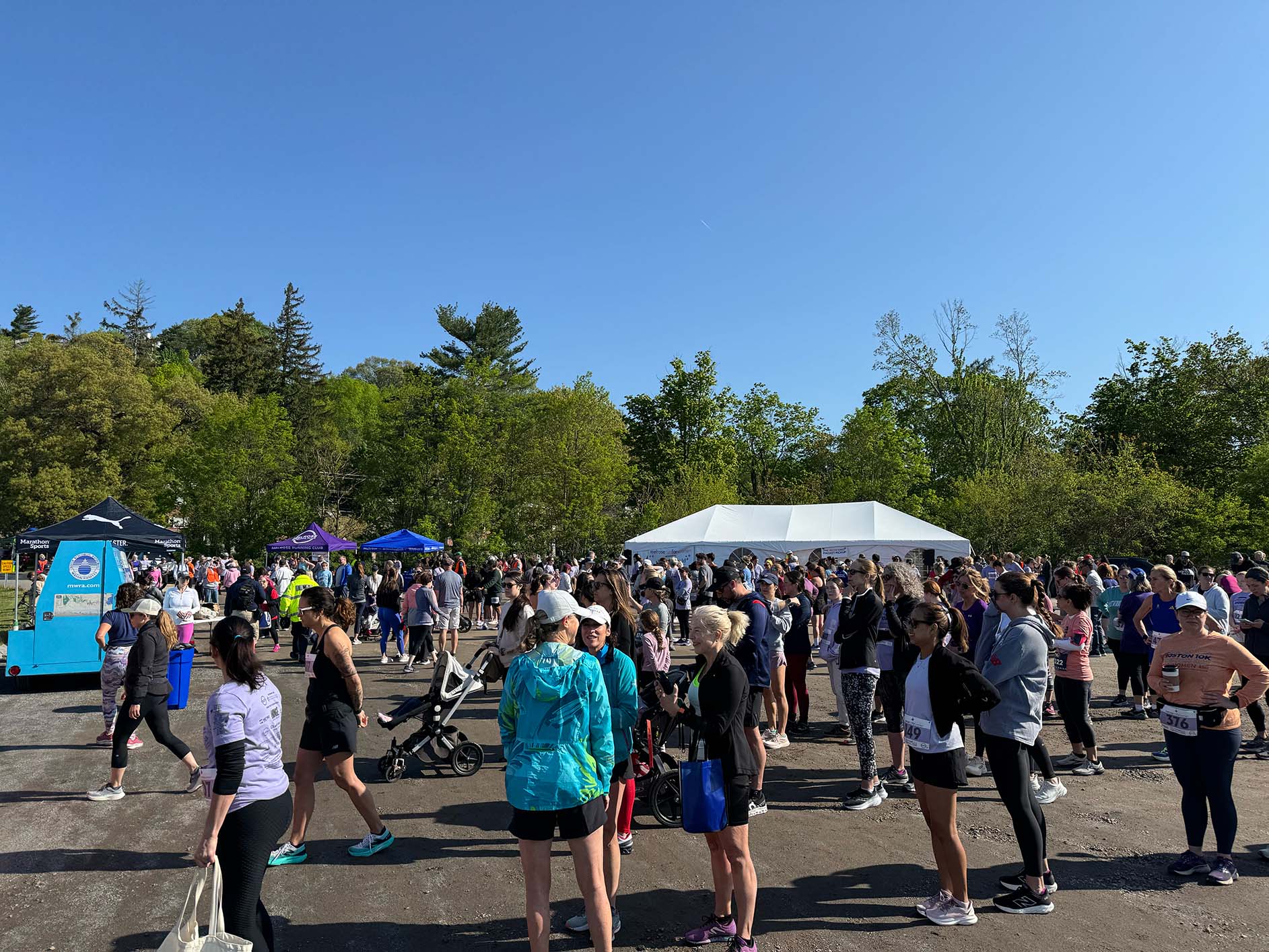 Runners and walkers gather before the race begins