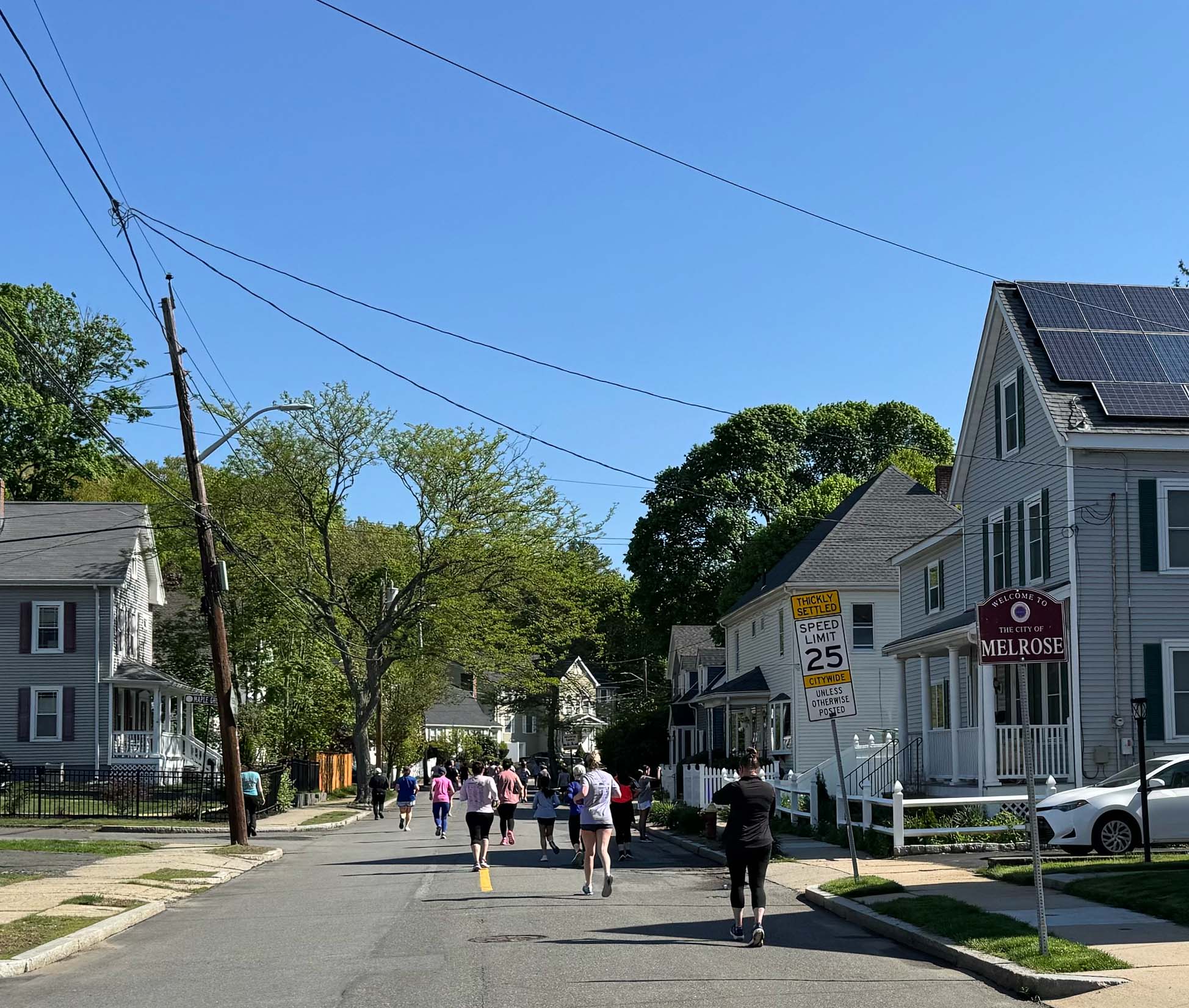 Runners and walkers move to the starting line as the Melrose Police escort prepares