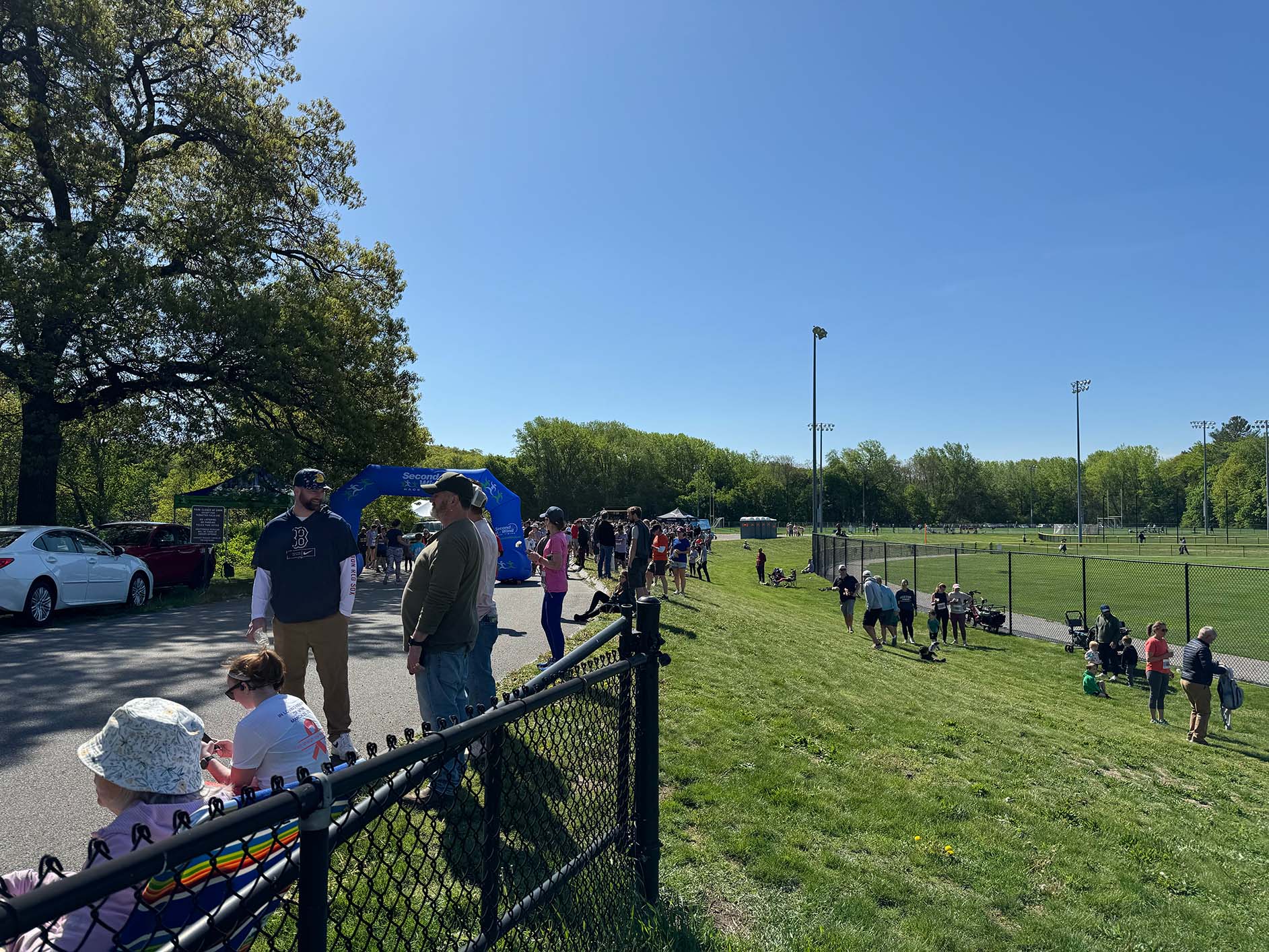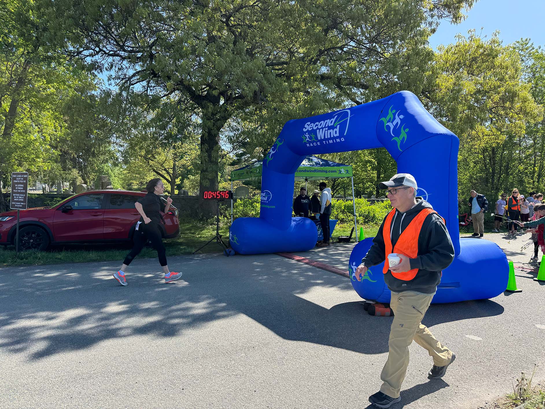 Runners cooling down at the finish line at Pine Banks Park