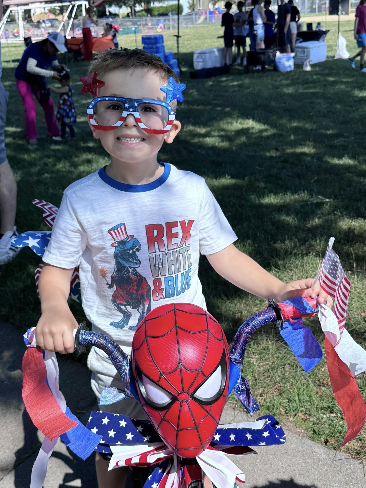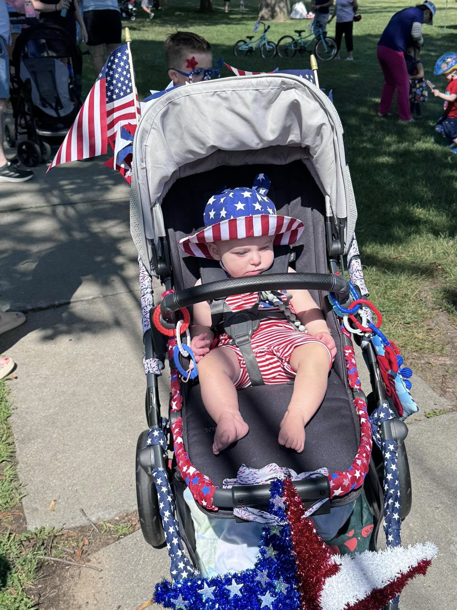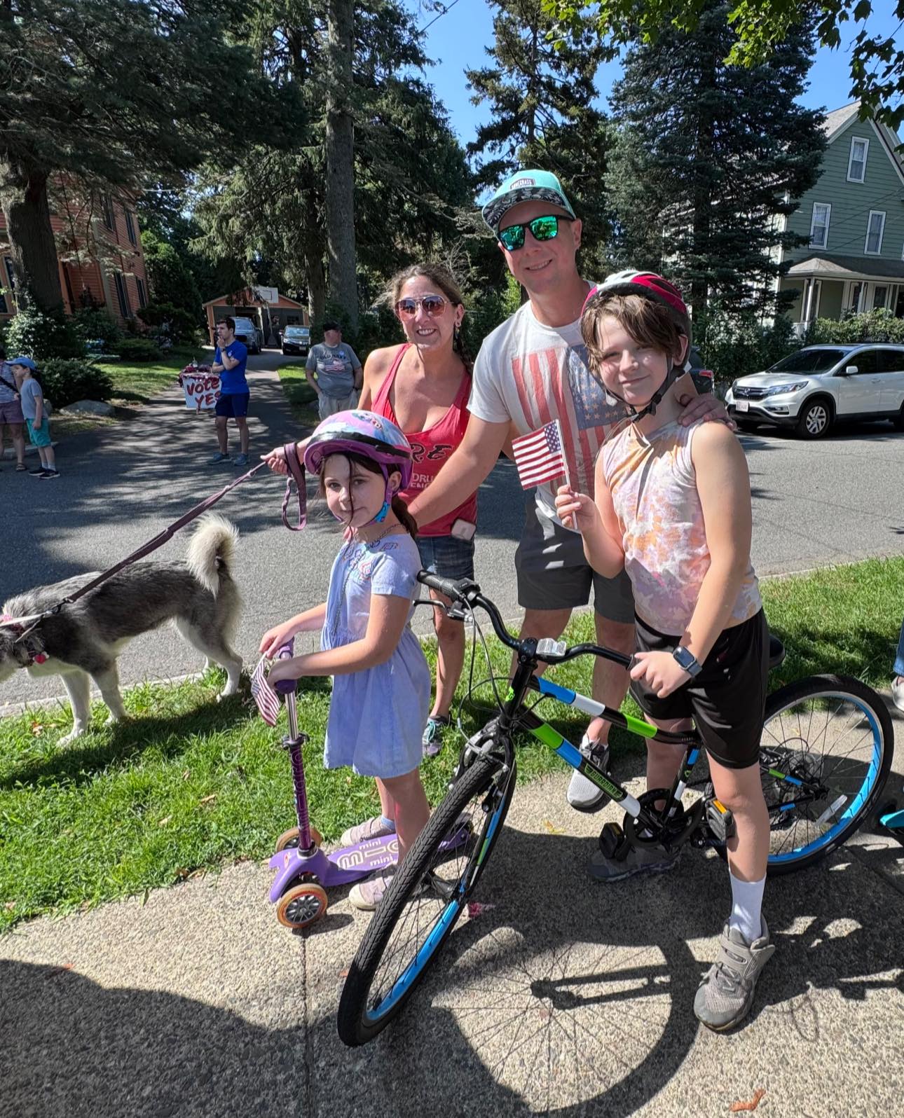 At the Bike and Carriage Parade, families decorated strollers, wagons, bikes, and scooters with flags, streamers, ribbons, and other materials. They paraded around the Melrose Common and then enjoyed ice pops from Seven Mile Road Church, bubbles and a giant parachute from the Melrose Department of Recreation, temporary tattoos from State Representative Kate Lipper Garabedian, and playing with one another on the fields and playground.
