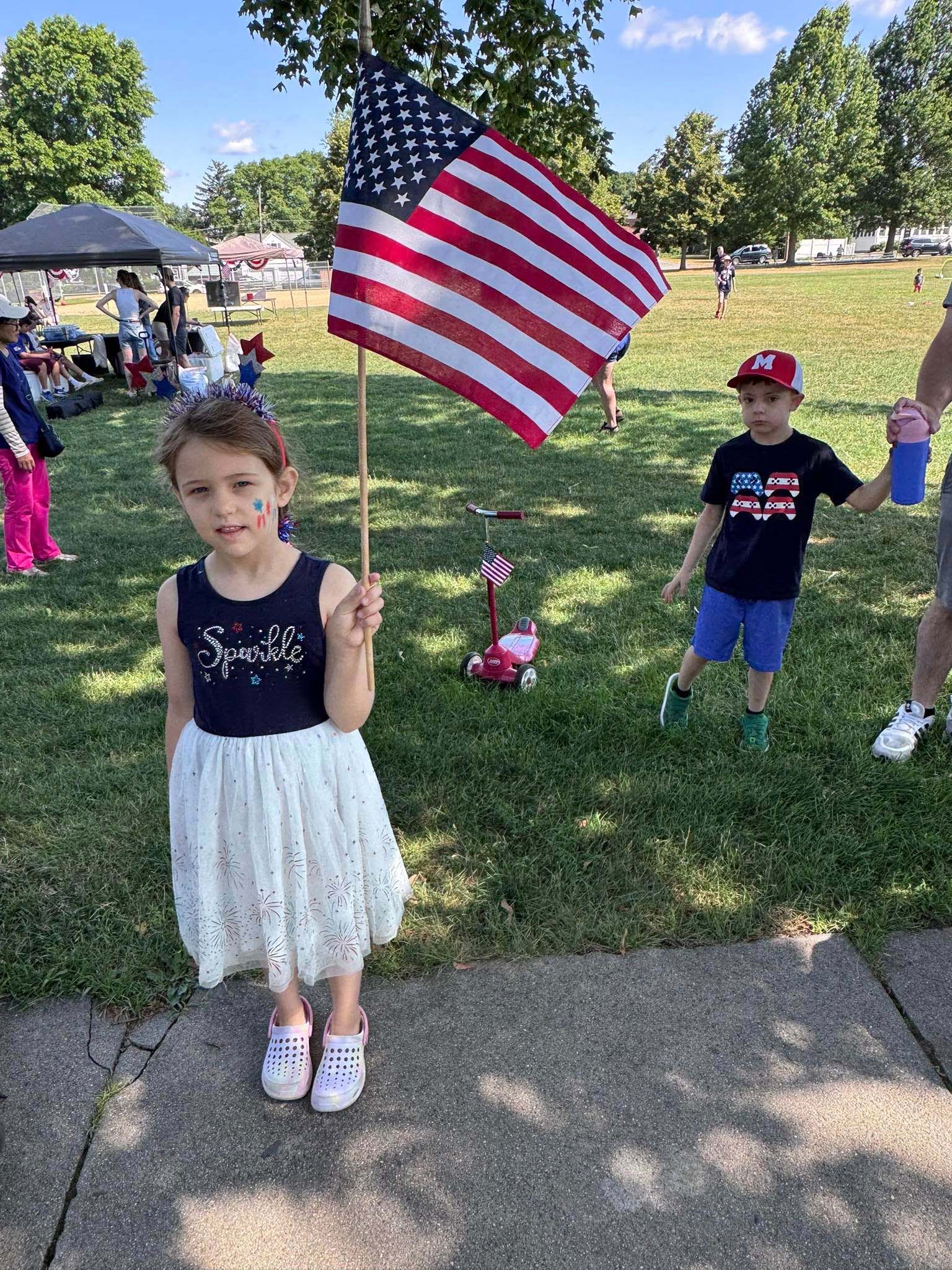 The program finished with America the Beautiful, and then the children were given flags and paraded around the lawn during Stars and Stripes Forever.